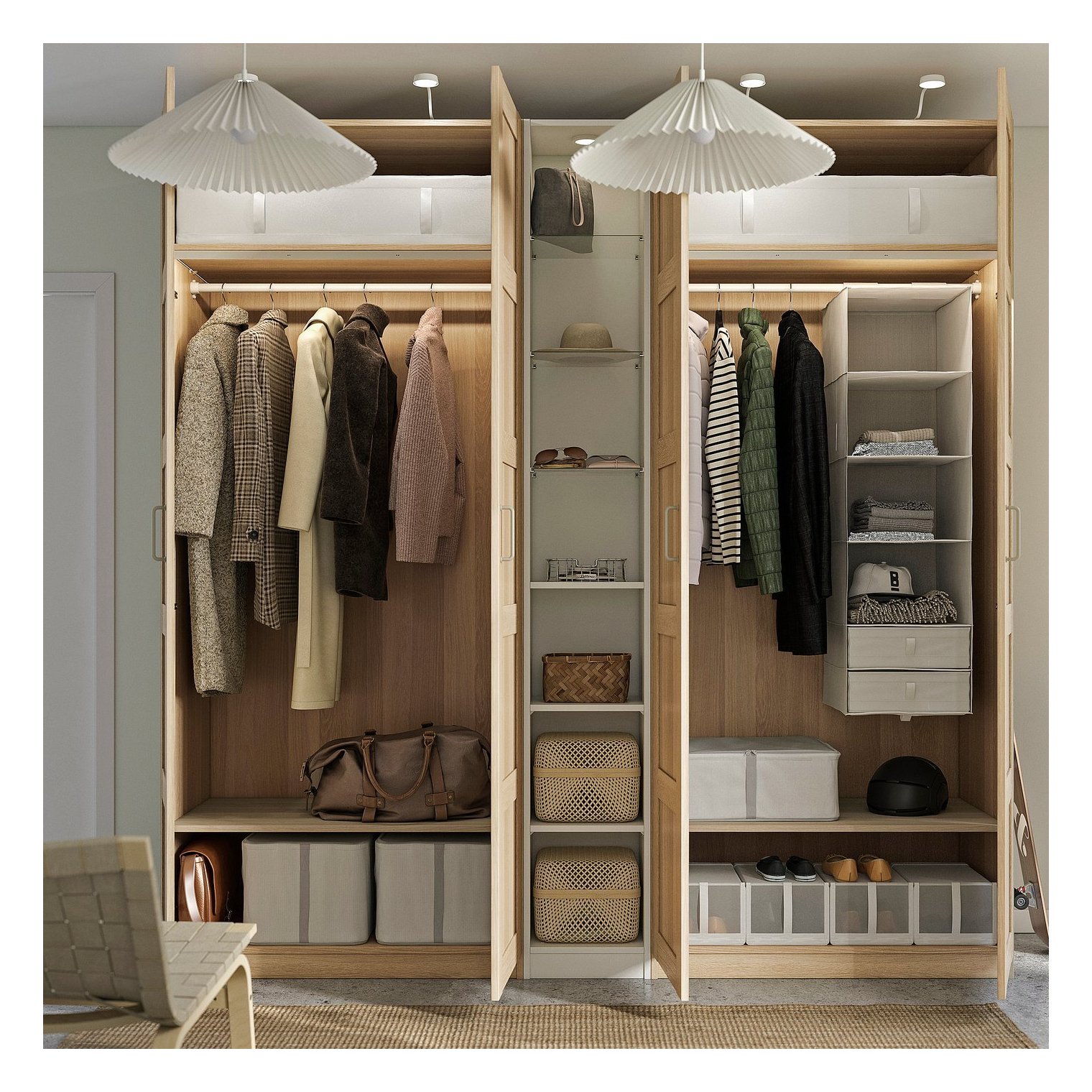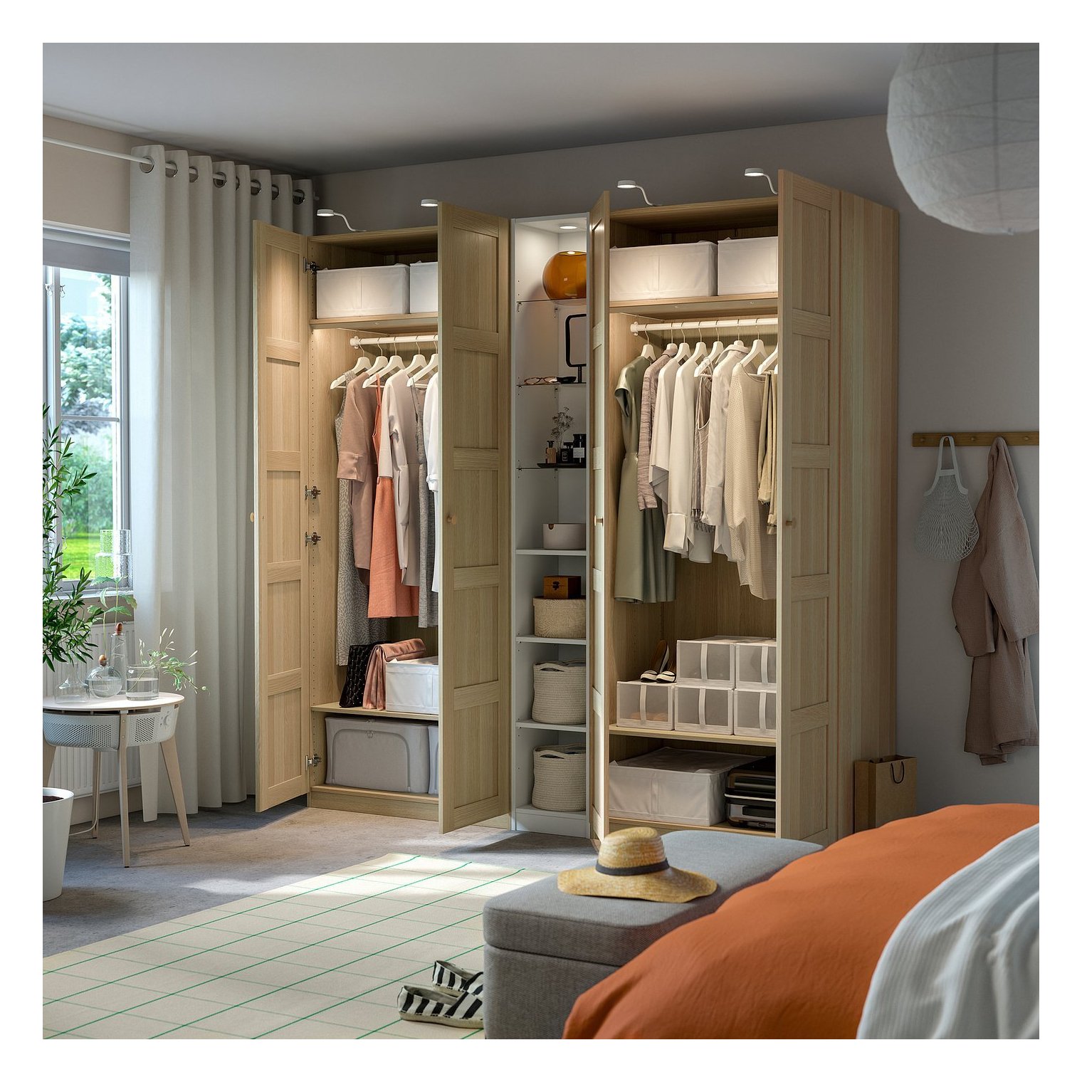 Средняя секция PAX имеет простой и неподвластный времени дизайн, который легко персонализировать, выбрав ящики, корзины и освещение.