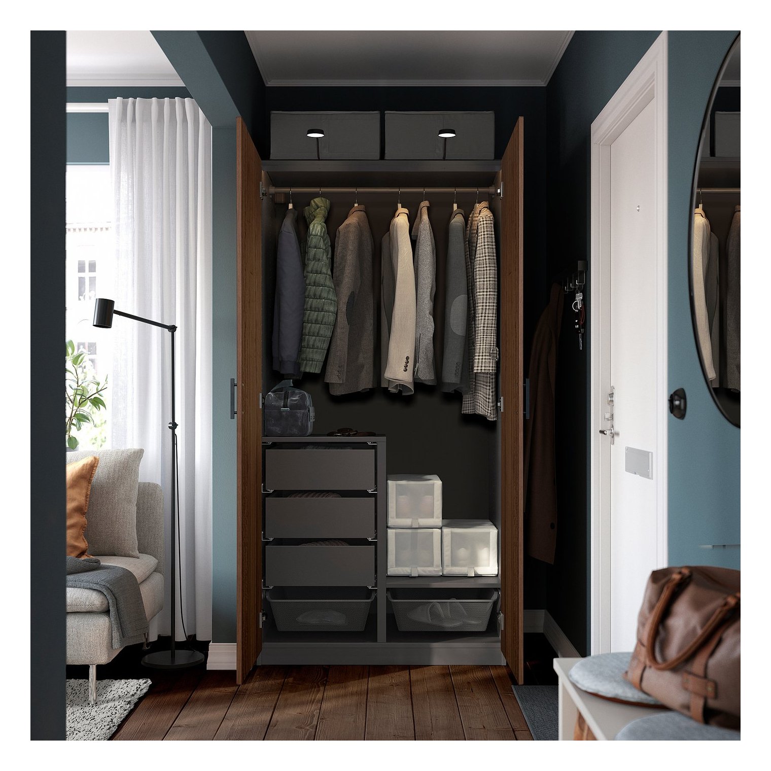 Містка вішалка для одягу як довгих, так і коротких розмірів. У вас лише сорочки однакової довжини? При бажанні ви можете легко додати ящики або кошики.