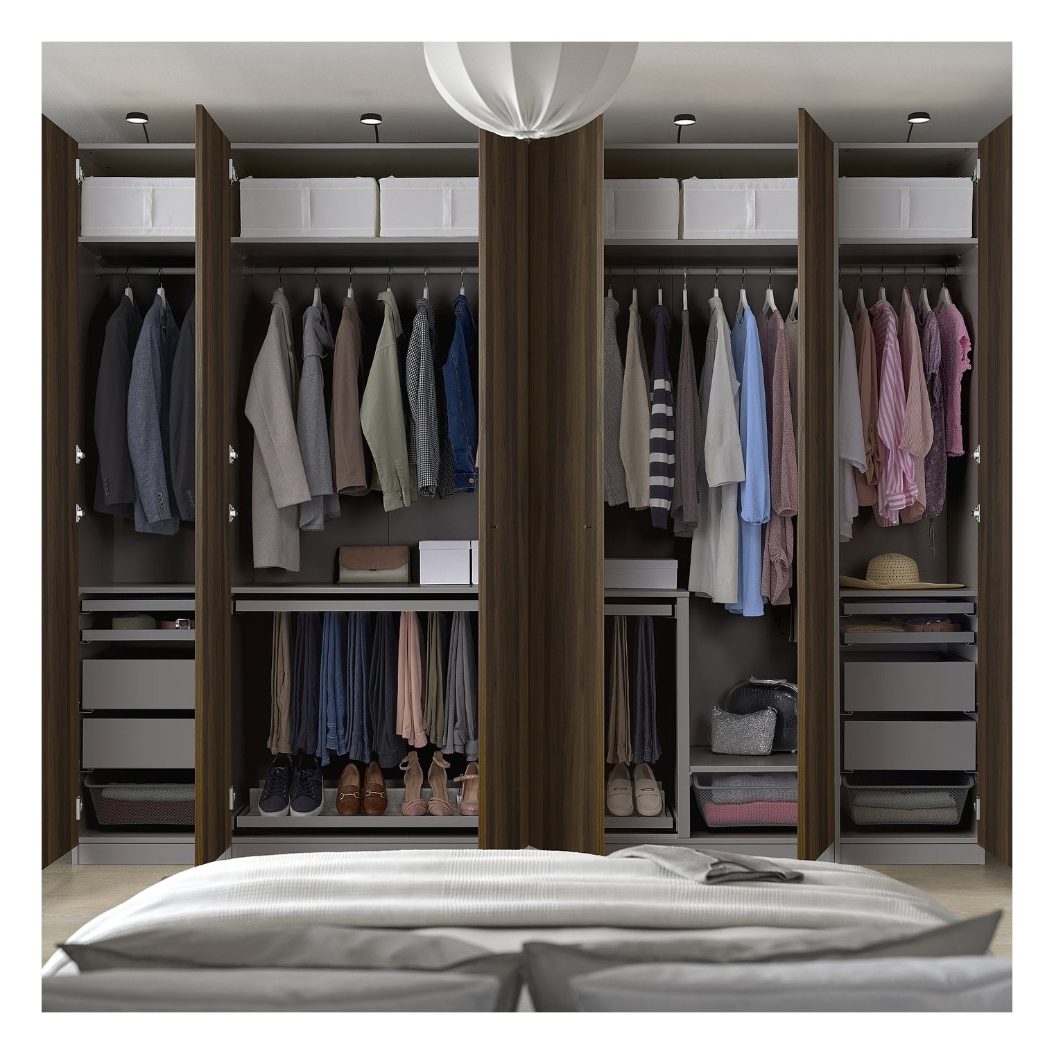 Каркас гардеробу/висувна вішалка для штанів/висувний кошик/висувний лоток/полиця/вставка з 4 відділеннями/вставка з відділеннями/взуття для висувної скриньки/двері/петлі самозакриваються/рейка/перегородка рами/скринька/дротяний кошик