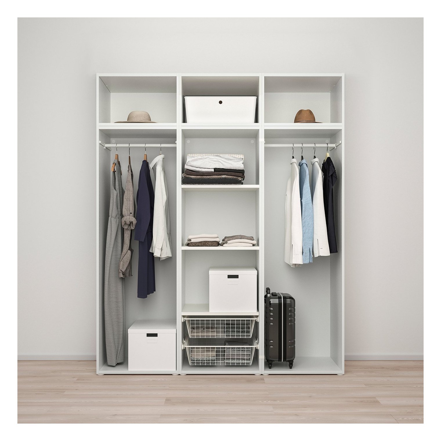 Системи зберігання PLATSA легко адаптуються до ваших потреб — просто додайте (або видаліть) рами, двері, внутрішні та зовнішні аксесуари, ніжки або вішалки.