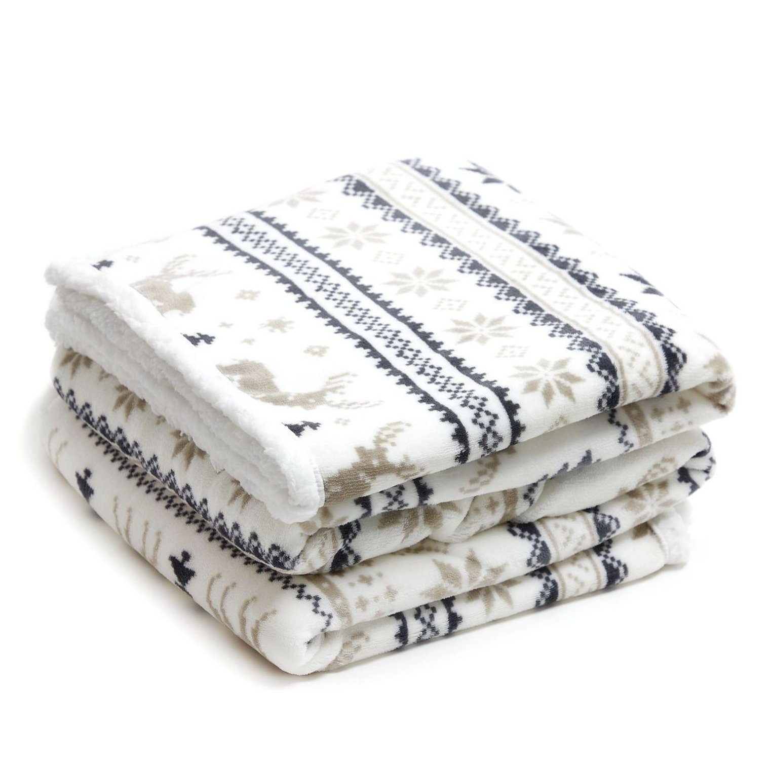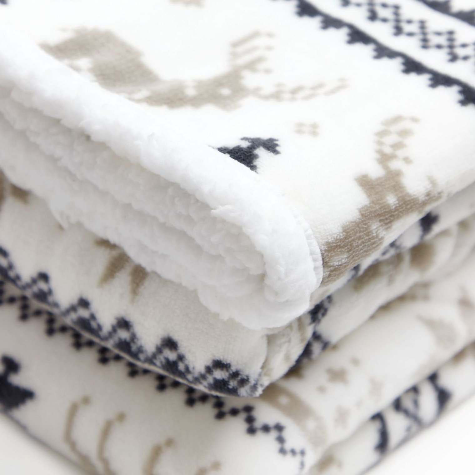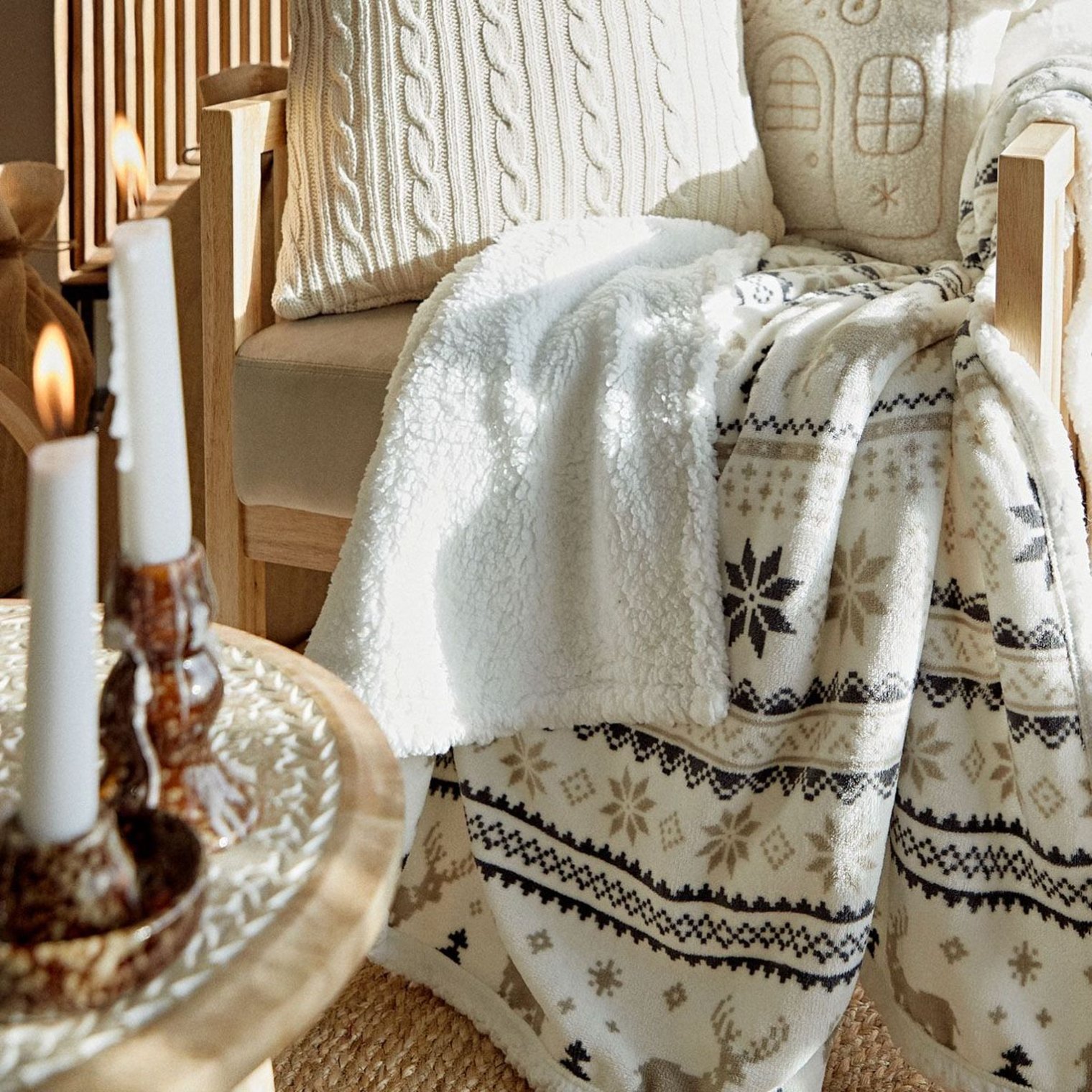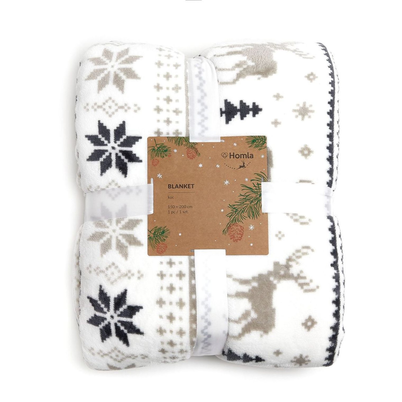 М'яка, тепла і приємна на дотик – саме такою є ковдра HOMLA CRIMI. Вам сподобається закутуватись у нього, відпочиваючи біля каміна, подрімати після різдвяного застілля або подивитися різдвяну комедію. Лицьова сторона ковдри прикрашена візерунком «Сніжинки та олені», а виворітна сторона вкрита м'яким шерпа-флісом, який зігріває, як шерсть.