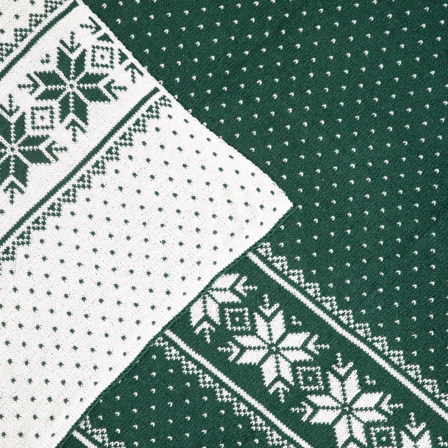 Плед шеніл 150х200 см із різдвяним мотивом, зелений із білим.