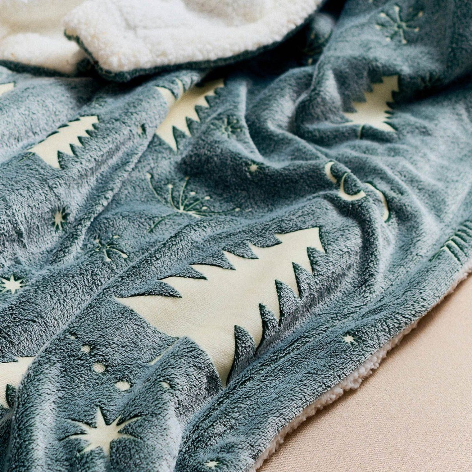 Плед LUMINOSO створить у вашому будинку неповторну чарівну атмосферу. Його святкові візерунки, що м'яко світяться в темряві, перетворять будь-який вечір на затишний і теплий момент. М'який і приємний на дотик плед забезпечить комфорт, а пухнастий шерпа забезпечить приємне тепло.