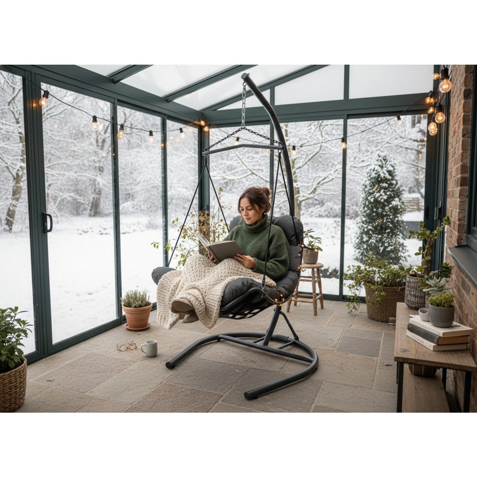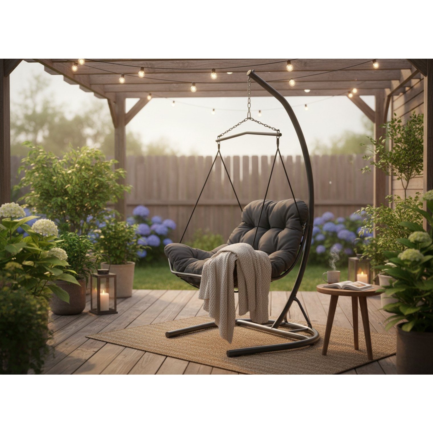 Хочеш створити свою приватну зону релаксу? Підвісне крісло TUMBER в елегантному антрацитовому кольорі забезпечить тобі комфорт на найвищому рівні - в саду, на терасі або у вітальні.