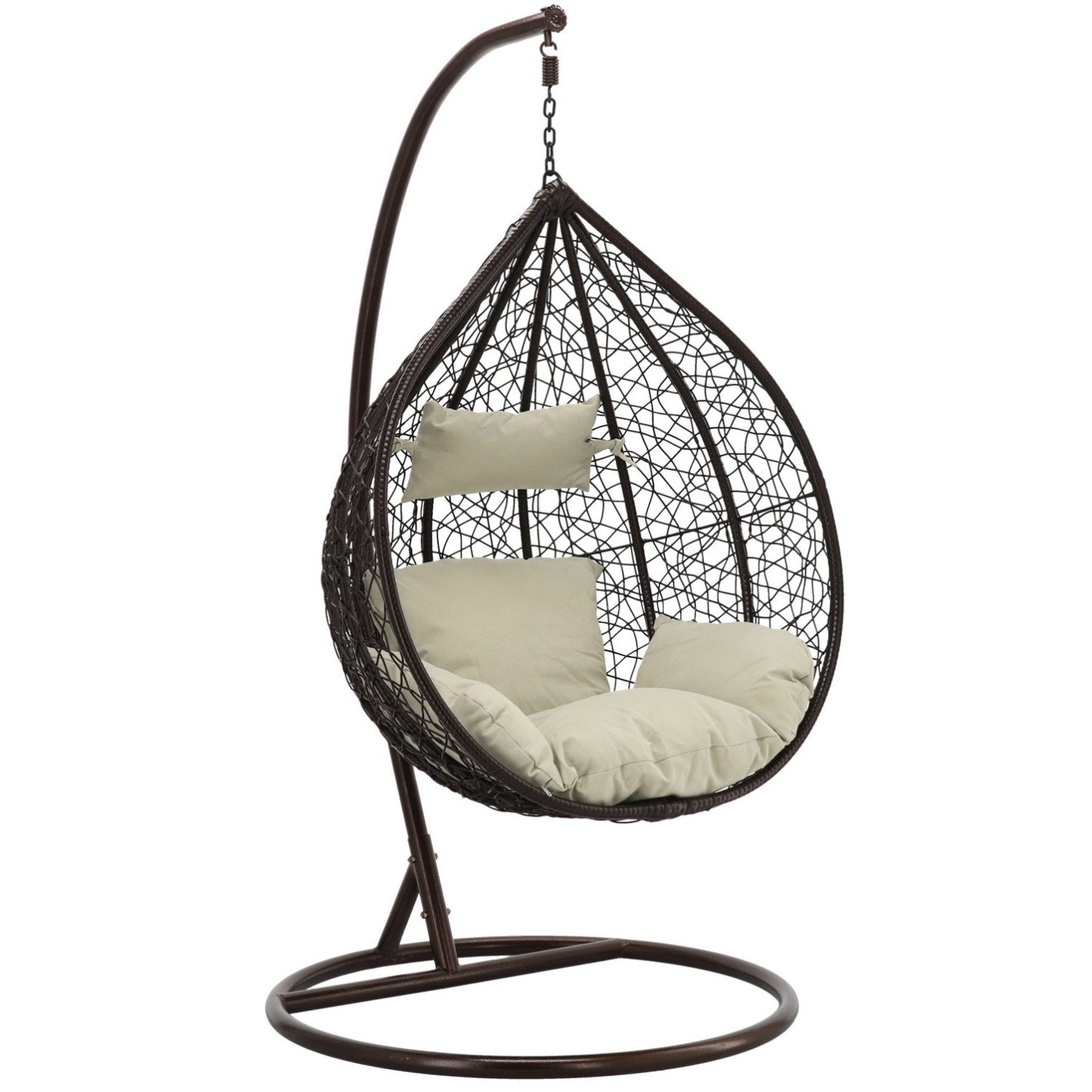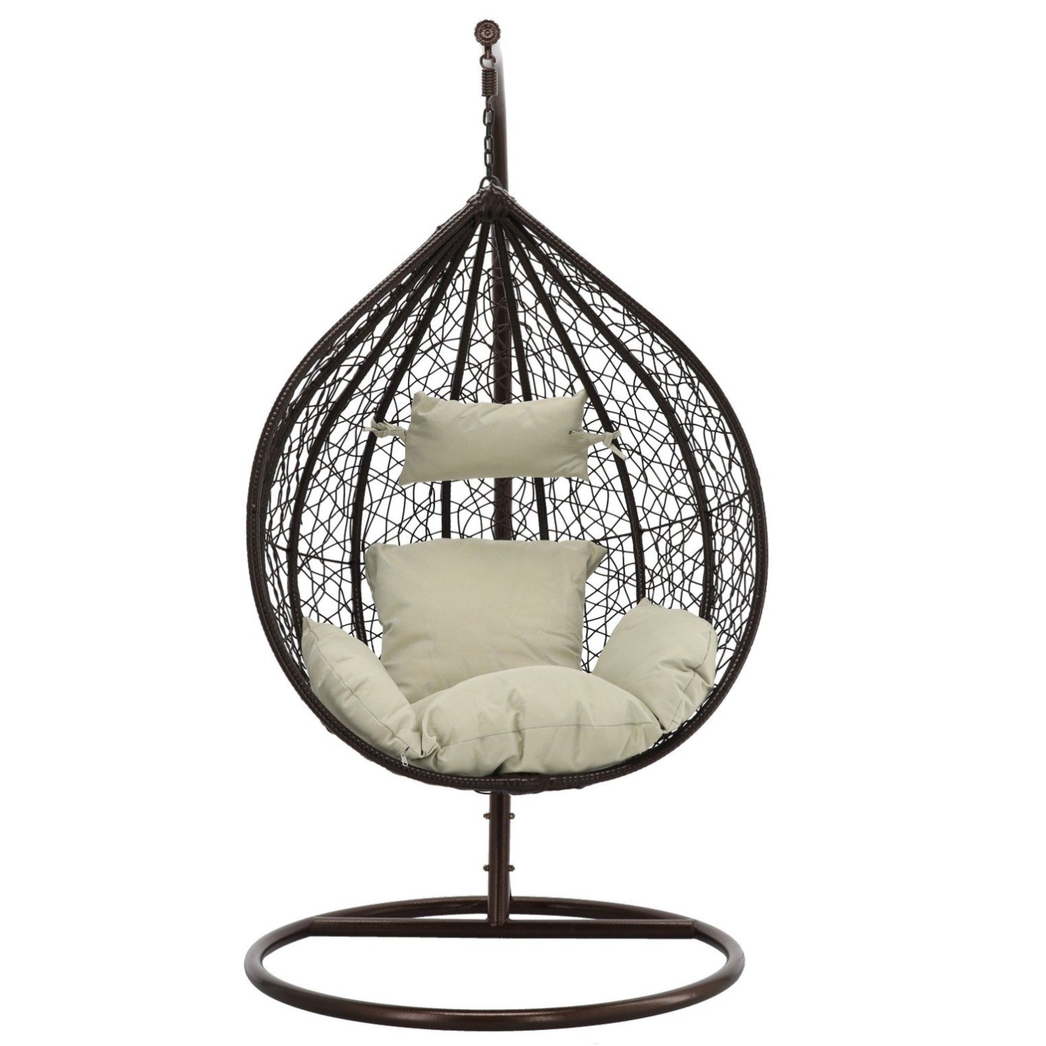 Підвісне крісло легко збирається, його конструкція стійка та безпечна. Садове крісло з каркасом - ідеальний спосіб відпочити влітку. Він стане улюбленим місцем відпочинку кожного члена сім'ї та гостя. Подібно до гойдалок, крісло робить м'яке похитування, яке дуже розслаблює. Іншими перевагами є цікавий, сучасний вигляд та безкоштовна м'яка подушка.