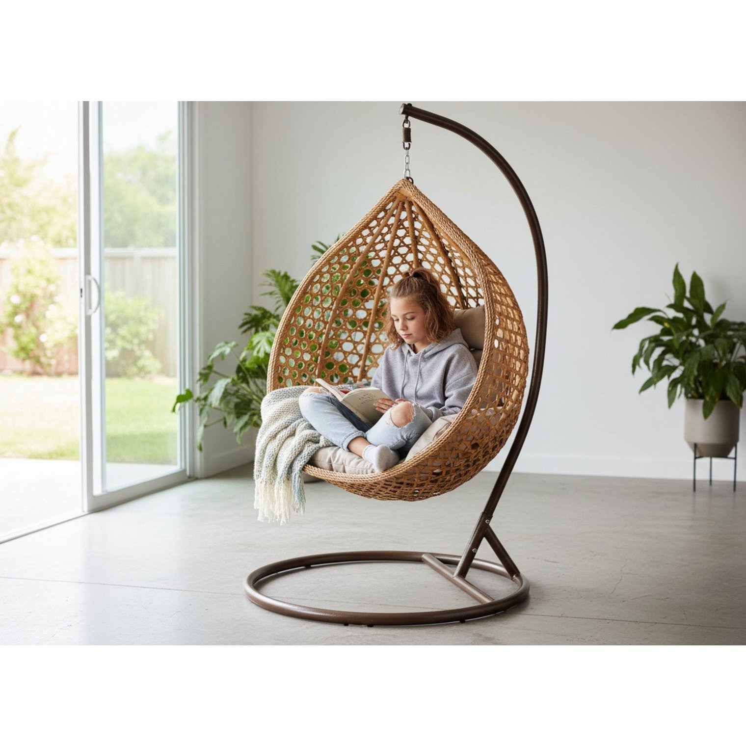 Підвісне крісло кокон - ідеальний спосіб відпочити влітку. Він стане улюбленим місцем відпочинку кожного домочадця та гостя. Подібно до гойдалок, крісло дозволяє легко погойдуватися, що дуже розслаблює. Цікавий сучасний вигляд та м'яка подушка – ще одна перевага.