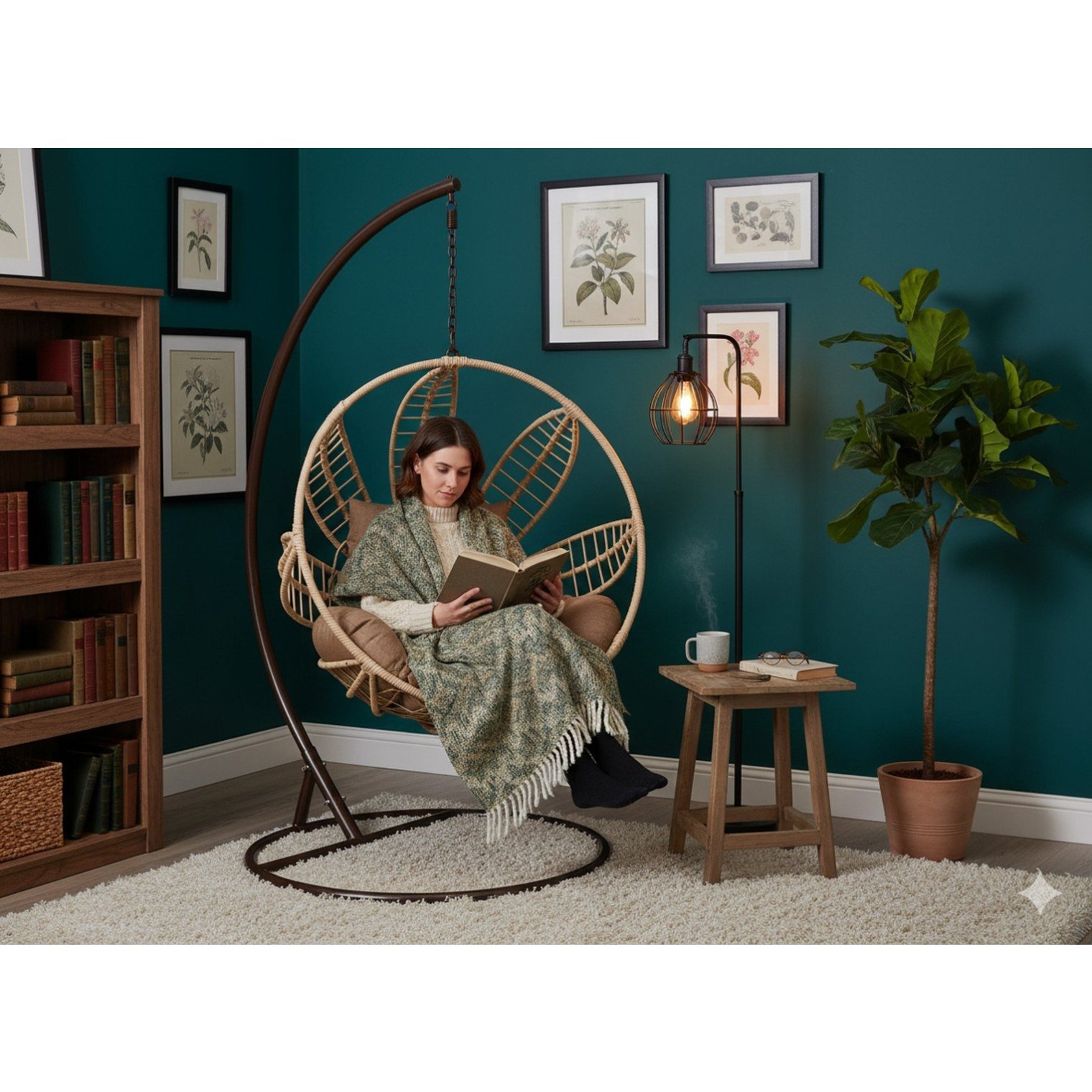 Захоплює натуральним плетінням, елегантною коричневою рамою та винятковим комфортом. Відмінно підходить для саду, тераси чи затишного куточка в будинку.