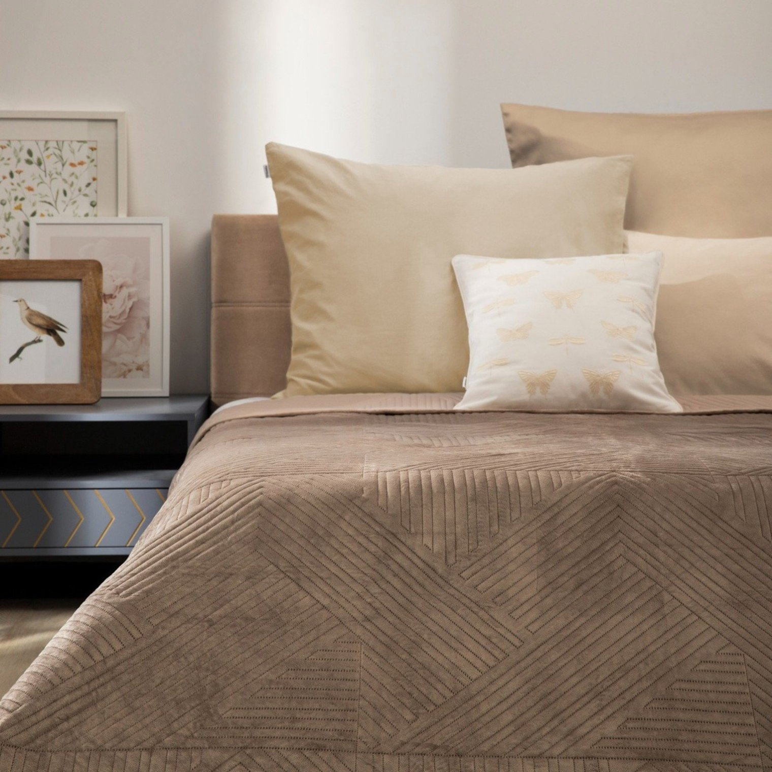 Покривало AURUM ідеально підходить для великих двоспальних ліжок, є стильним та практичним завершальним штрихом. Воно чудово підходить як для повсякденного декору, захищаючи постільну білизну, так і як додатковий шар тепла в холодні ночі.