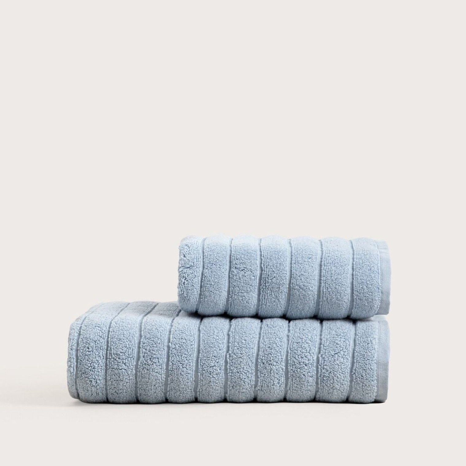Рушник ASTRI поєднує в собі пухнасту, м'яку бавовну та елегантний блакитний колір. Ретельно оброблені краї та підгини забезпечують довговічність та естетично привабливий зовнішній вигляд навіть при інтенсивному використанні. Воно стане ідеальним доповненням до будь-якої ванної кімнати.