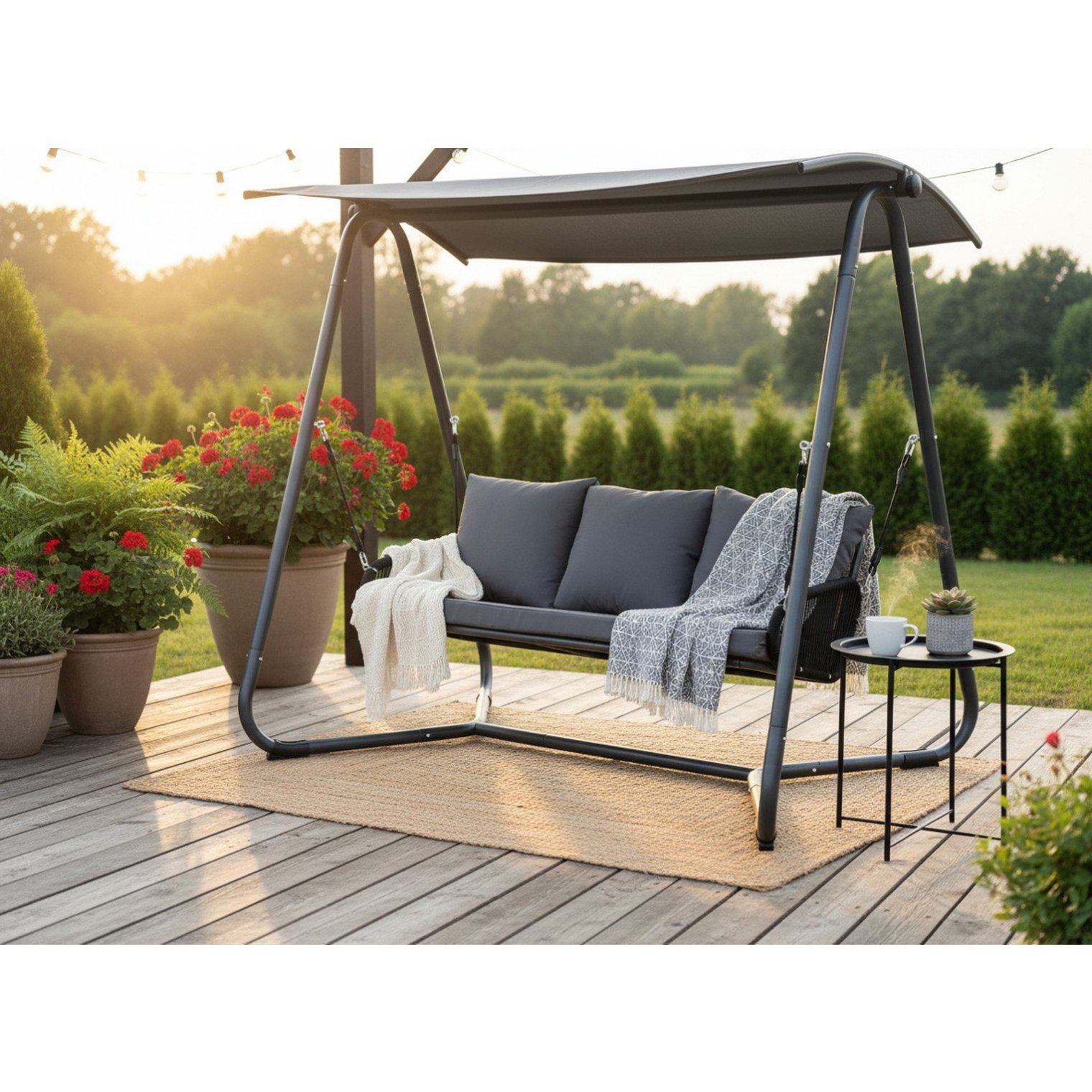 Садова гойдалка Garden Line 180x139x185 см Антрацит KRE3149