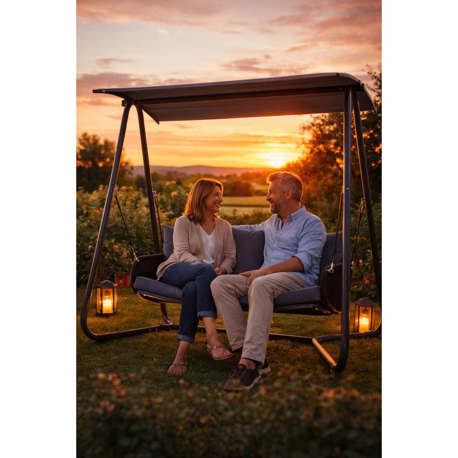 - Сталева рама з порошковим покриттям робить гойдалку стійкою та довговічною.