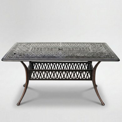Цей прямокутний садовий стіл із алюмінію з порошковим покриттям в античному стилі поєднує в собі елегантний дизайн та високу міцність.
