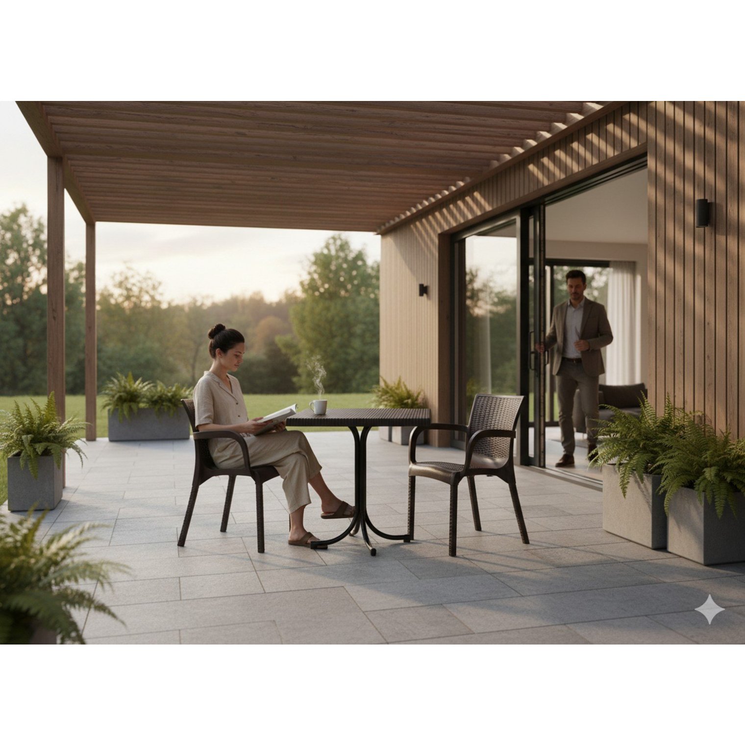 - Стільниця, що імітує ротанг - естетика ротанга і легкість догляду в одному