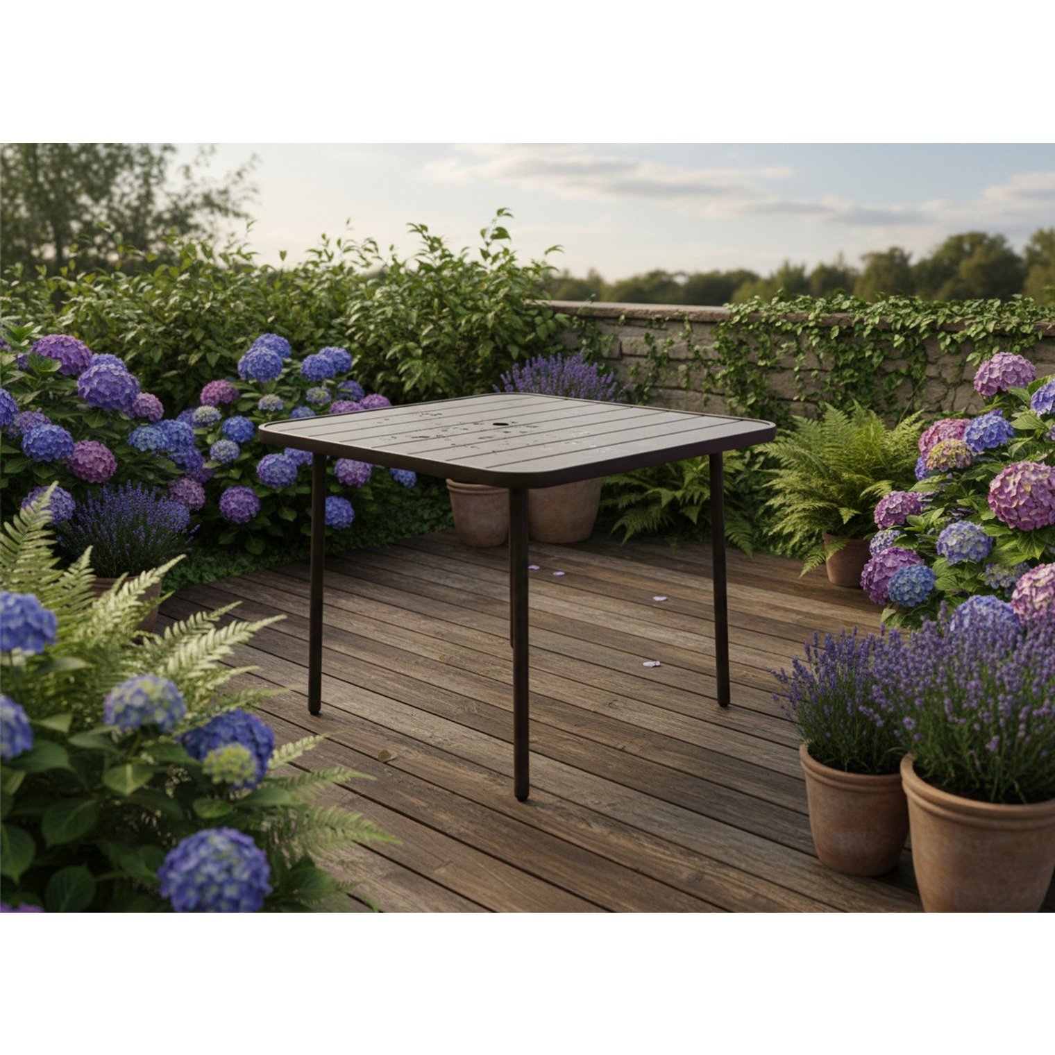 Створіть елегантну та функціональну зону відпочинку у своєму саду, на терасі чи балконі. Квадратний садовий столик у класичному кольорі – це поєднання міцної конструкції, позачасового дизайну та практичності, яке ідеально підійде як для щоденного релаксу, так і для зустрічей із близькими.