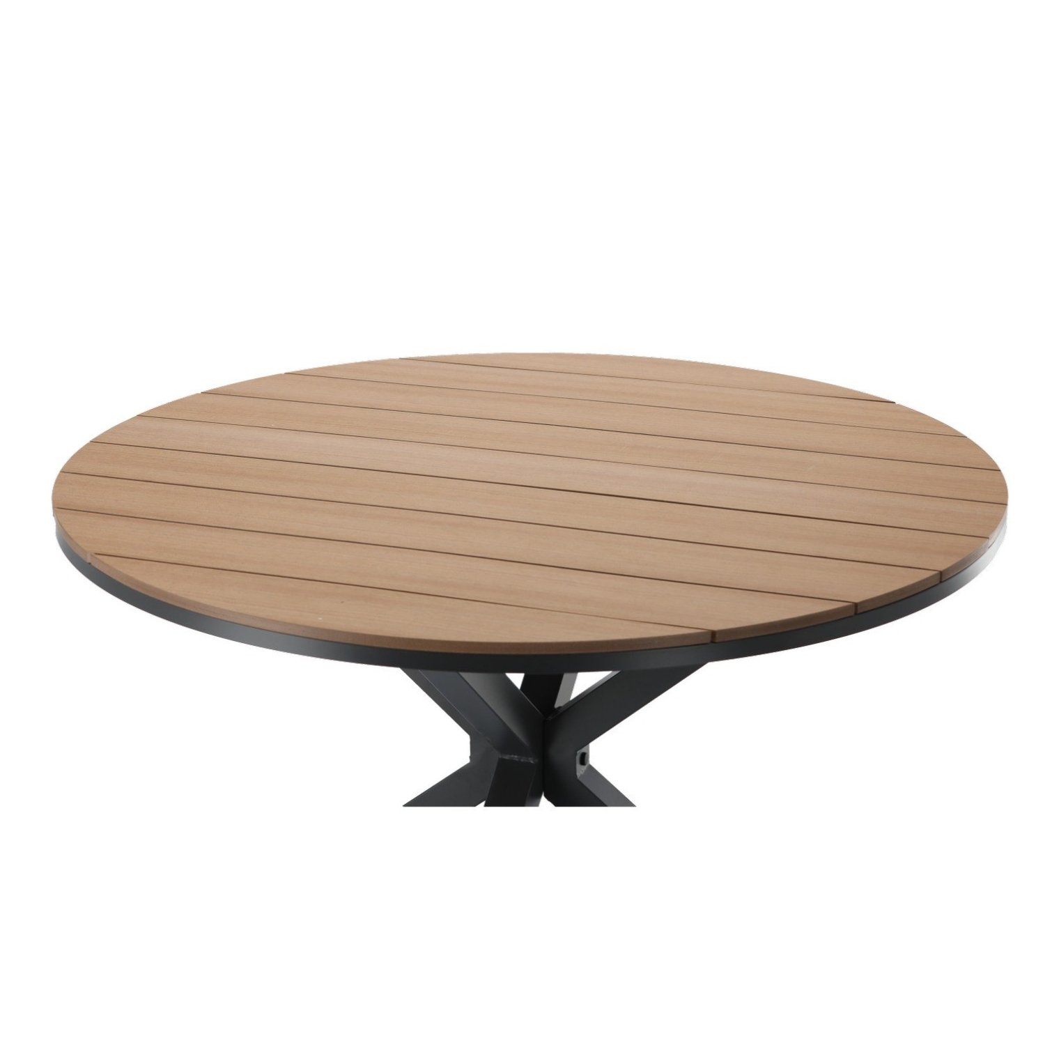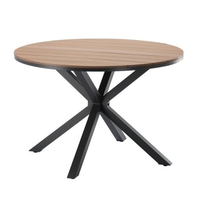 Відкрийте цей стильний круглий садовий стіл, який ідеально поєднує в собі сучасний дизайн і високу стійкість до погодних умов. Його легка, але міцна алюмінієва конструкція та стільниця з полівуду, що імітує натуральне дерево, роблять його ідеальним для тераси, саду або патіо. Темно-сірий колір надає йому елегантного та універсального характеру, легко вписуючись у різні відкриті простори.