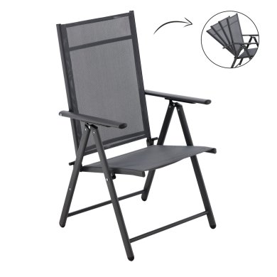 Сіре садове крісло на сім положень. Завдяки можливості встановлення семи різних положень наше крісло ідеально відповідає вашим уподобанням. Вважаєте за краще ви лежати рівно або сидіти прямо, наше крісло обов'язково виправдає ваші очікування.