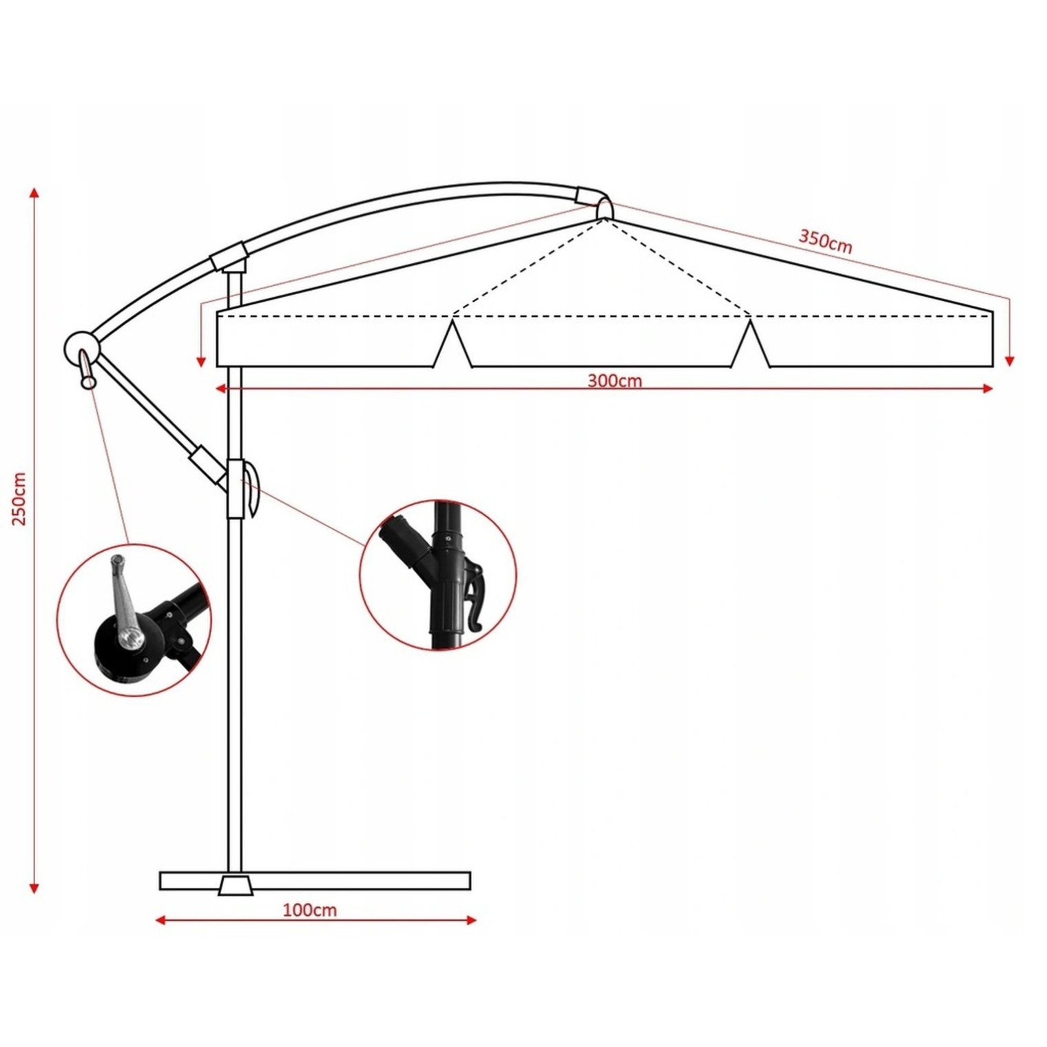 - Діаметр купола парасольки: 300 см