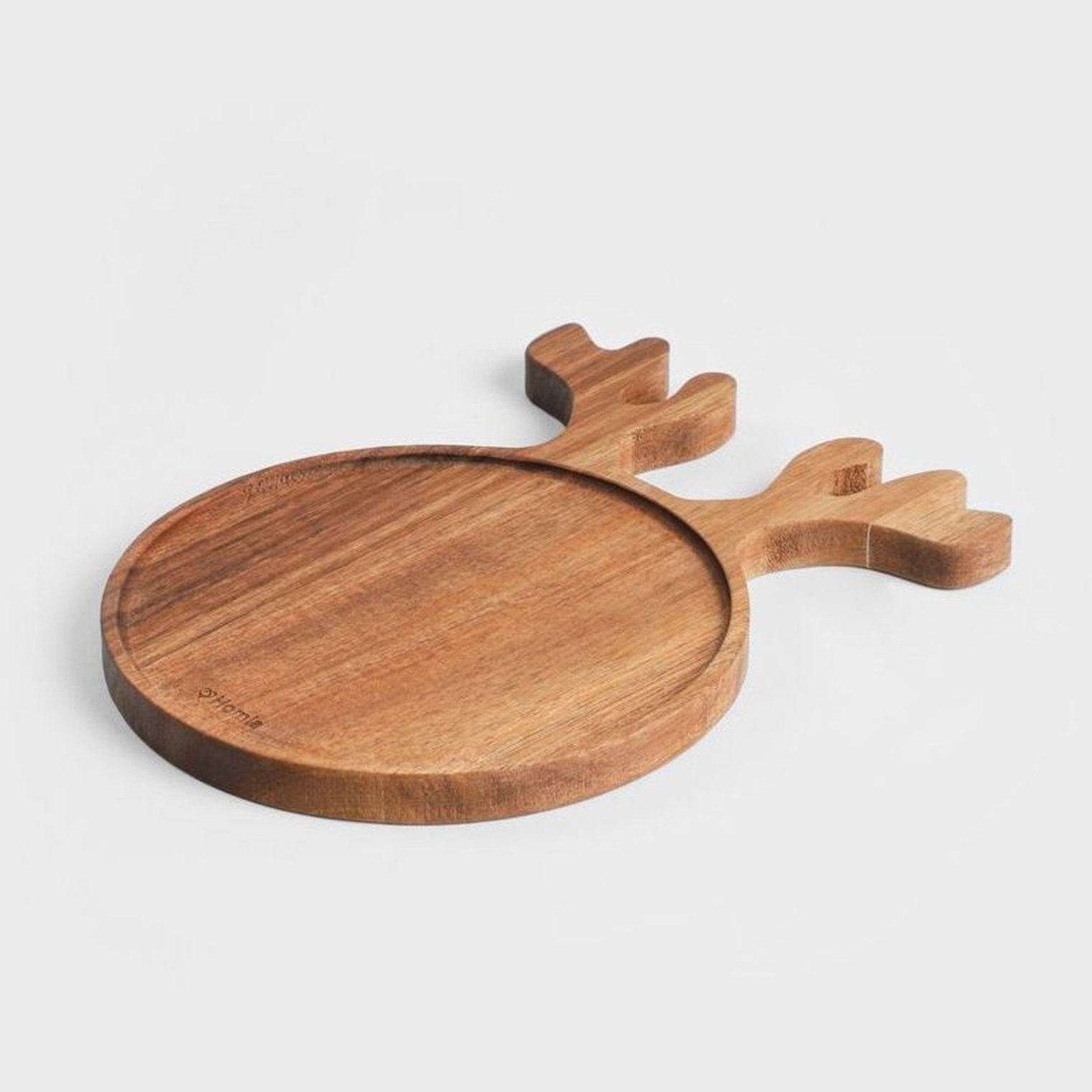 Ця дерев'яна дошка для сервірування у формі оленя стане грайливим і елегантним доповненням до вашого різдвяного столу. Закруглена форма ідеально підходить для подачі закусок, тортів чи напоїв, а ручка у формі оленя додасть святкового штриха.