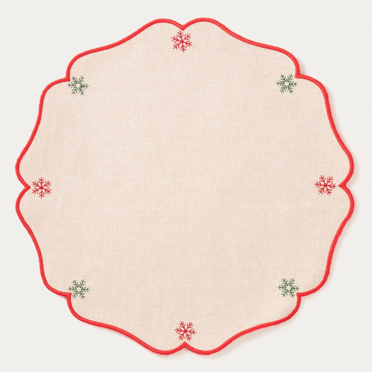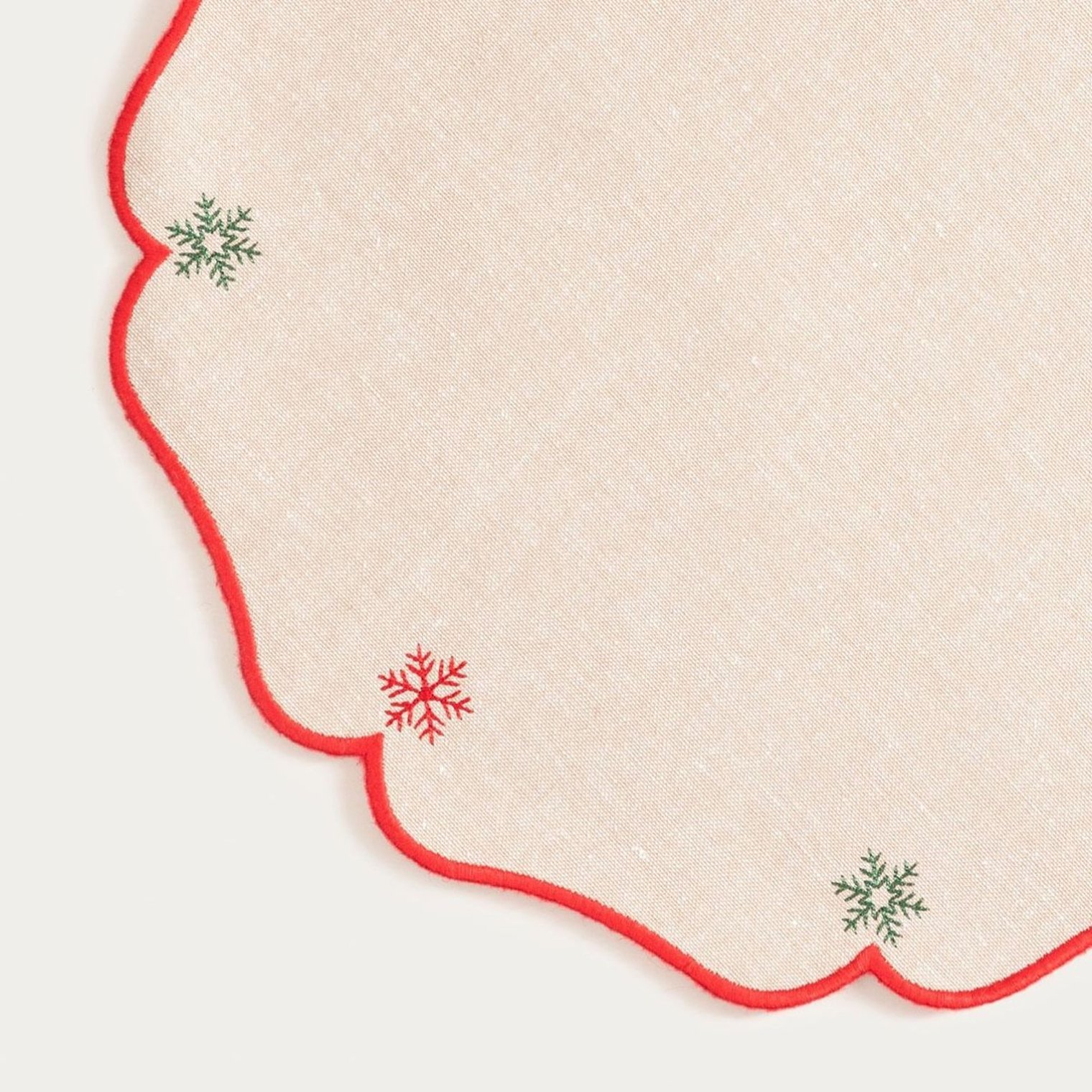 Серветка під прилад BRUGA поєднує в собі простоту, елегантність та святкову чарівність. Виготовлена з високоякісної світлої бавовни і прикрашена ефектною червоною окантовкою, що надає їй неповторного характеру. Нейтральні кольори та лаконічний дизайн доповнять як класичне, так і сучасне сервірування столу. Це ідеальний спосіб додати нотку святкового тепла до інтер'єру та створити затишну атмосферу для спільних обідів.