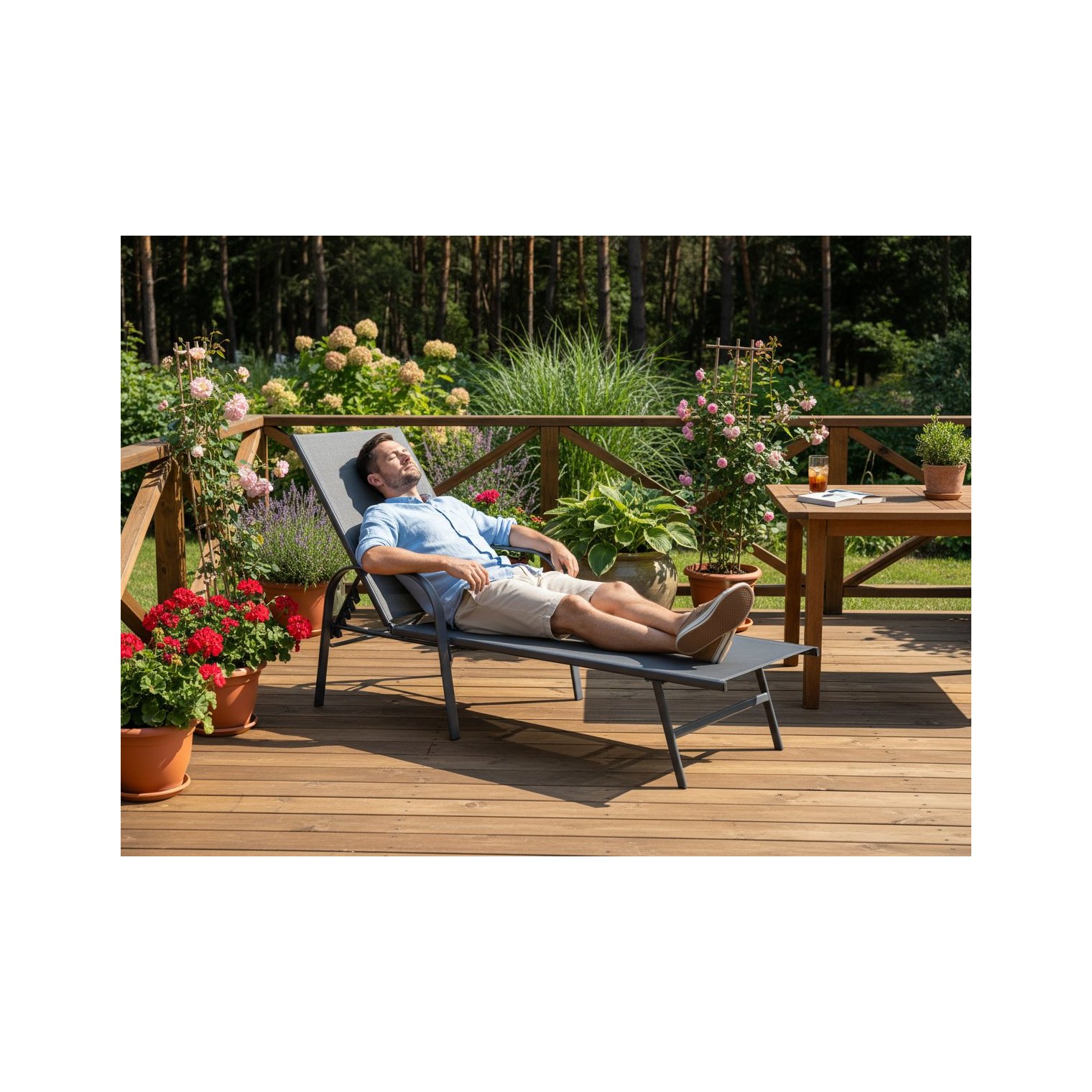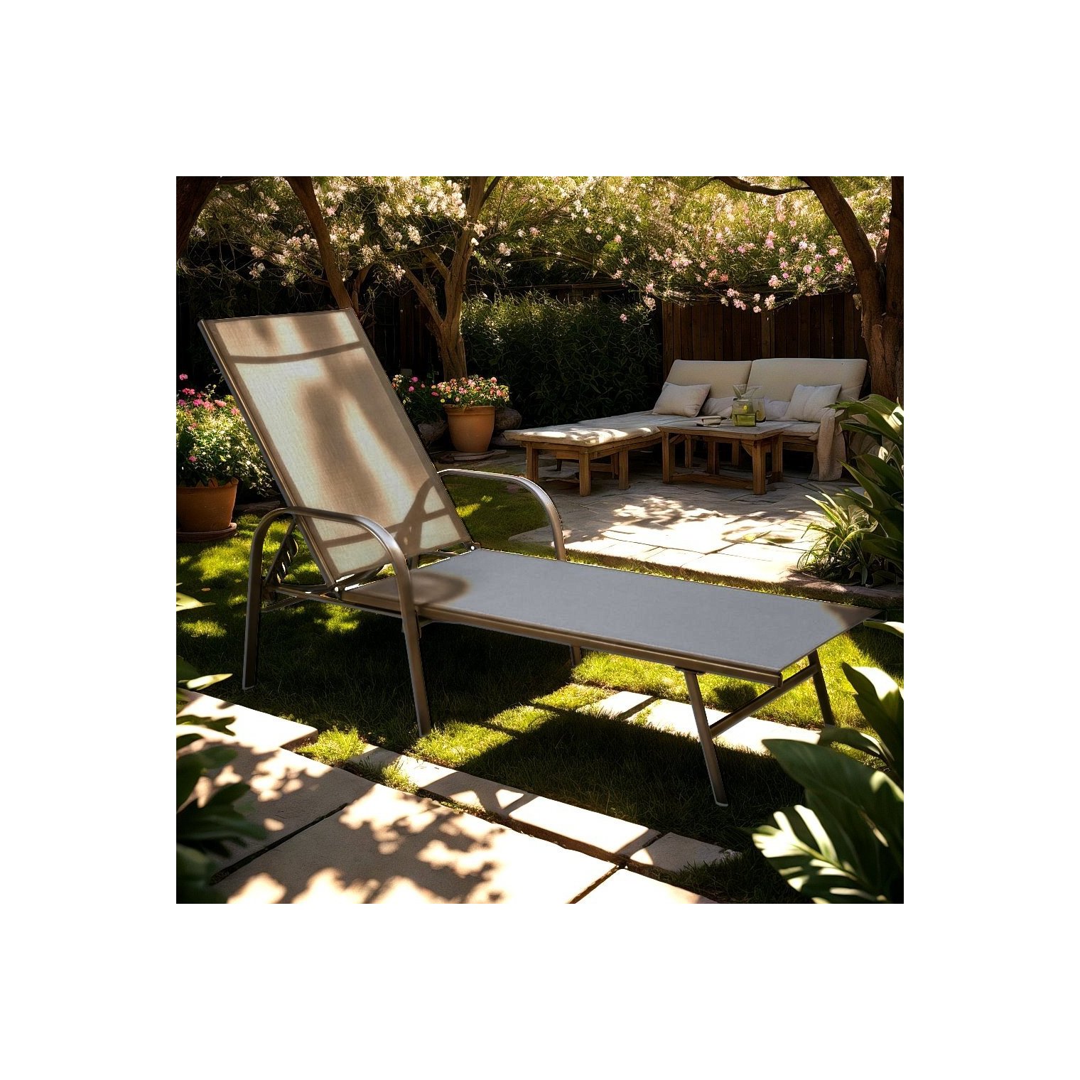 Садовий шезлонг GardenLine - ідеальне рішення для спекотних днів. Він добре працюватиме на терасі, в саду, біля басейну або на пляжі. Завдяки заднім колесам пересуватися надзвичайно зручно!