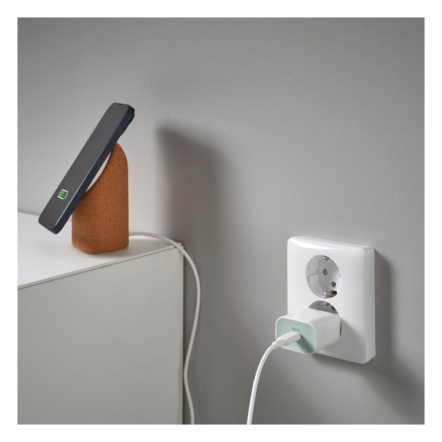 Зарядний пристрій SJÖSS потужністю 20 Вт підходить для смартфонів та портативних ламп.