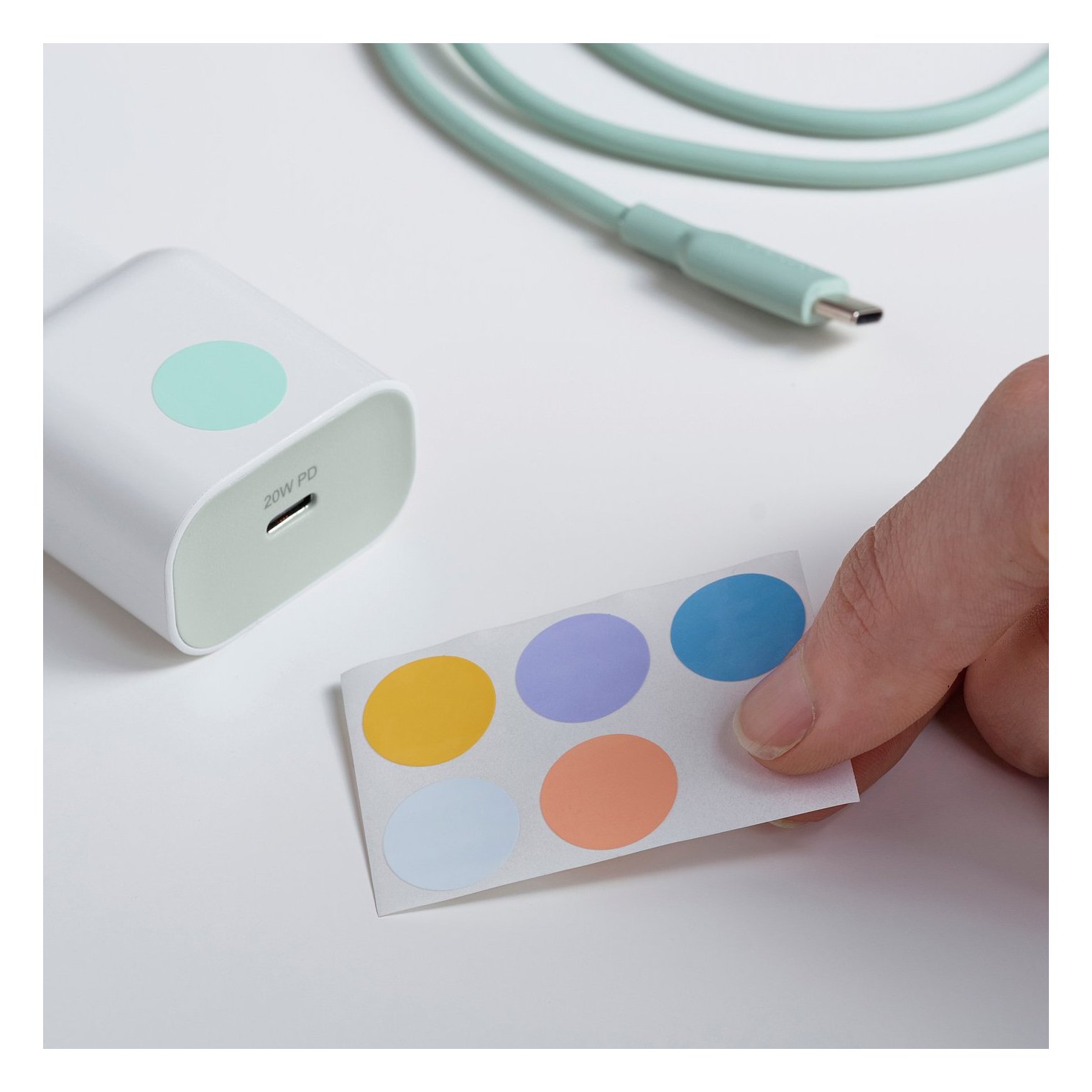 Ви можете персоналізувати зарядний пристрій за допомогою 6 кольорових наклейок, що входять до комплекту, щоб уникнути плутанини з іншими зарядними пристроями або підібрати колір під колір улюблених USB-кабелів.