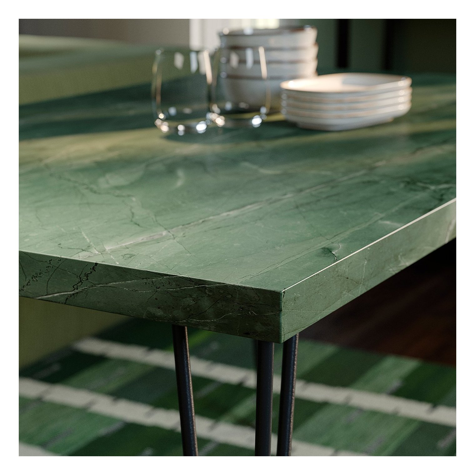 Толстая столешница придает столу прочный и долговечный вид.