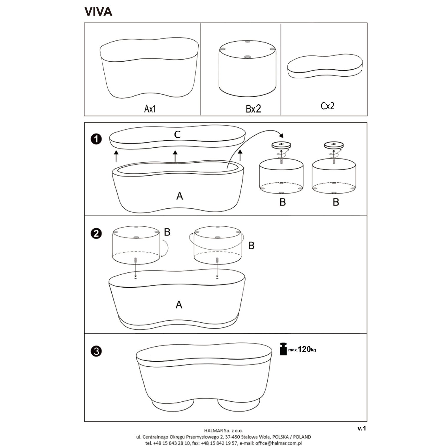 - Максимальне навантаження: 120 кг