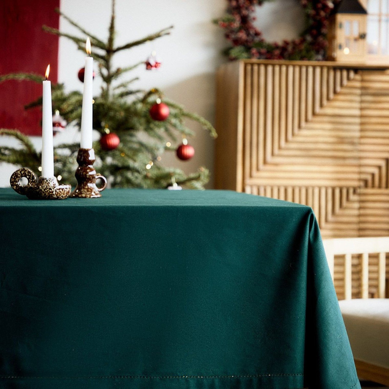 Скатертина FARRE ідеально підходить для прямокутного або овального столу. У святкові та урочисті дні вона створить чудове тло для білих серветок, золотистих підставок під прилади та стриманих декоративних аксесуарів. Завдяки своєму зеленому кольору вона чудово впишеться в сучасні вітальні, їдальні та кухні. Крім декоративної функції, скатертина також виконує важливу практичну функцію, захищаючи стільницю від подряпин та стійких плям.