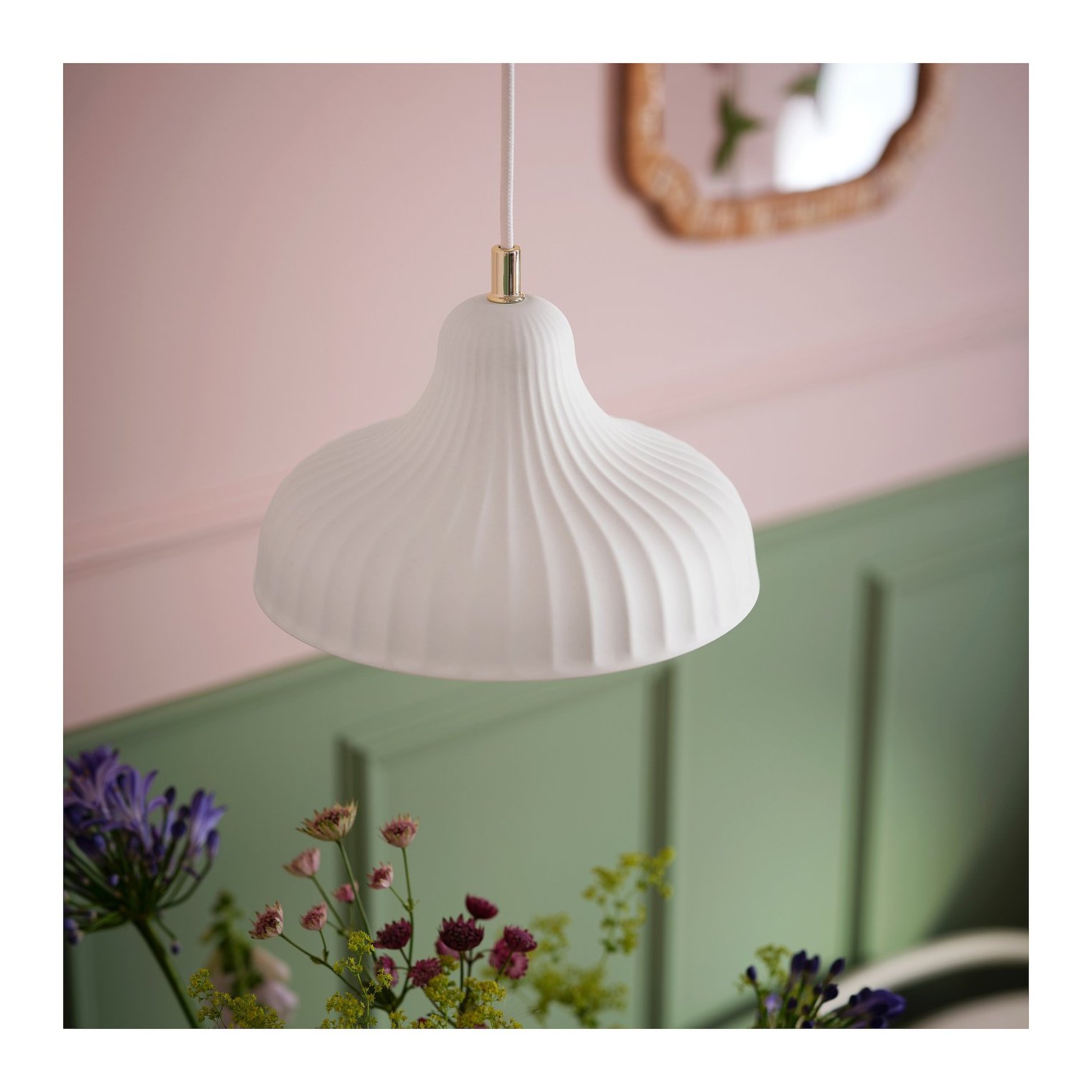 Ви можете легко налаштувати довжину шнура підвісного світильника. Як тільки світильник буде відрегульований до потрібної довжини, протягніть шнур, що залишився, в патрон і закріпіть його, притиснувши до стелі.