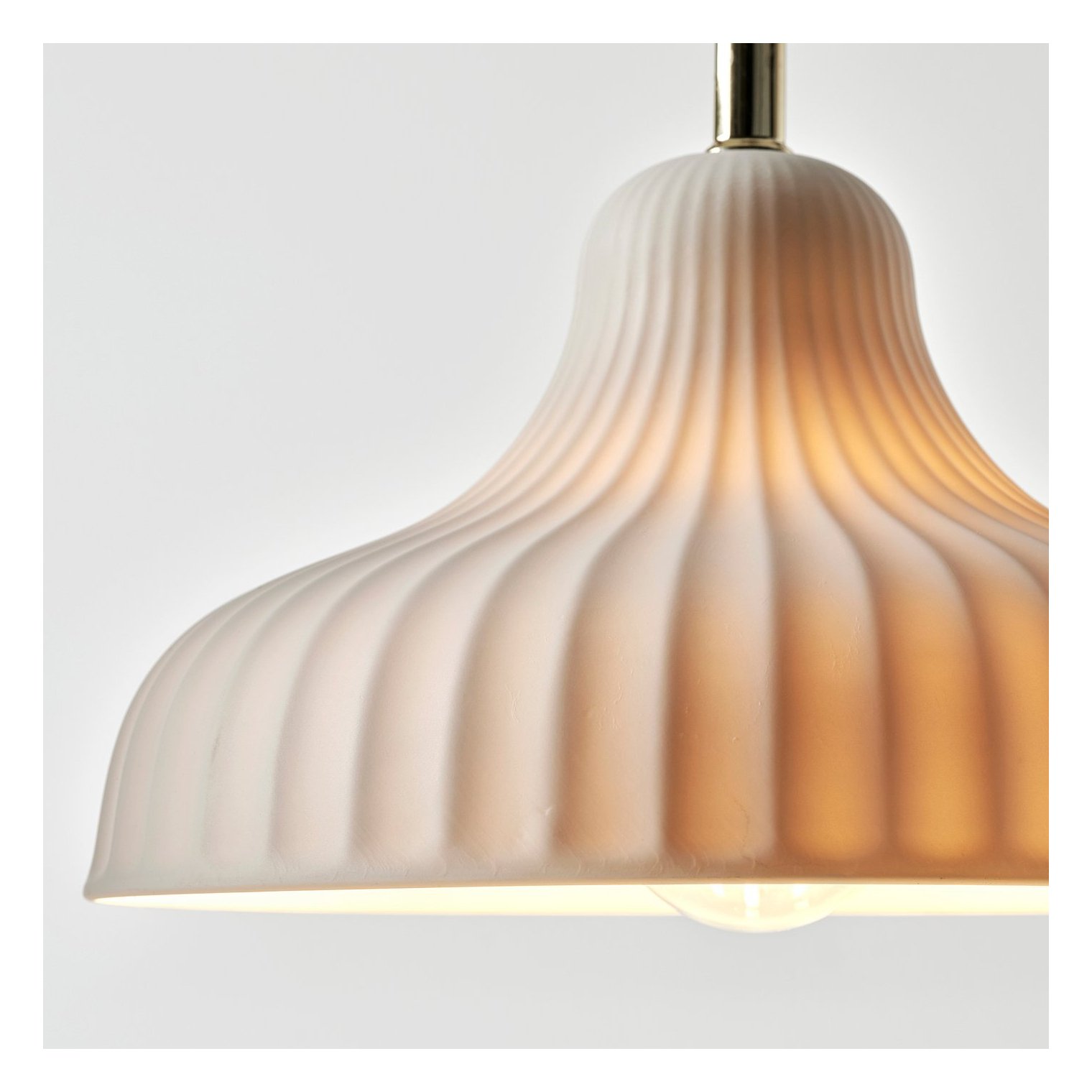 Світло проникає крізь керамічну основу світильника, створюючи тепле, затишне свічення та підкреслюючи візерунок абажура.