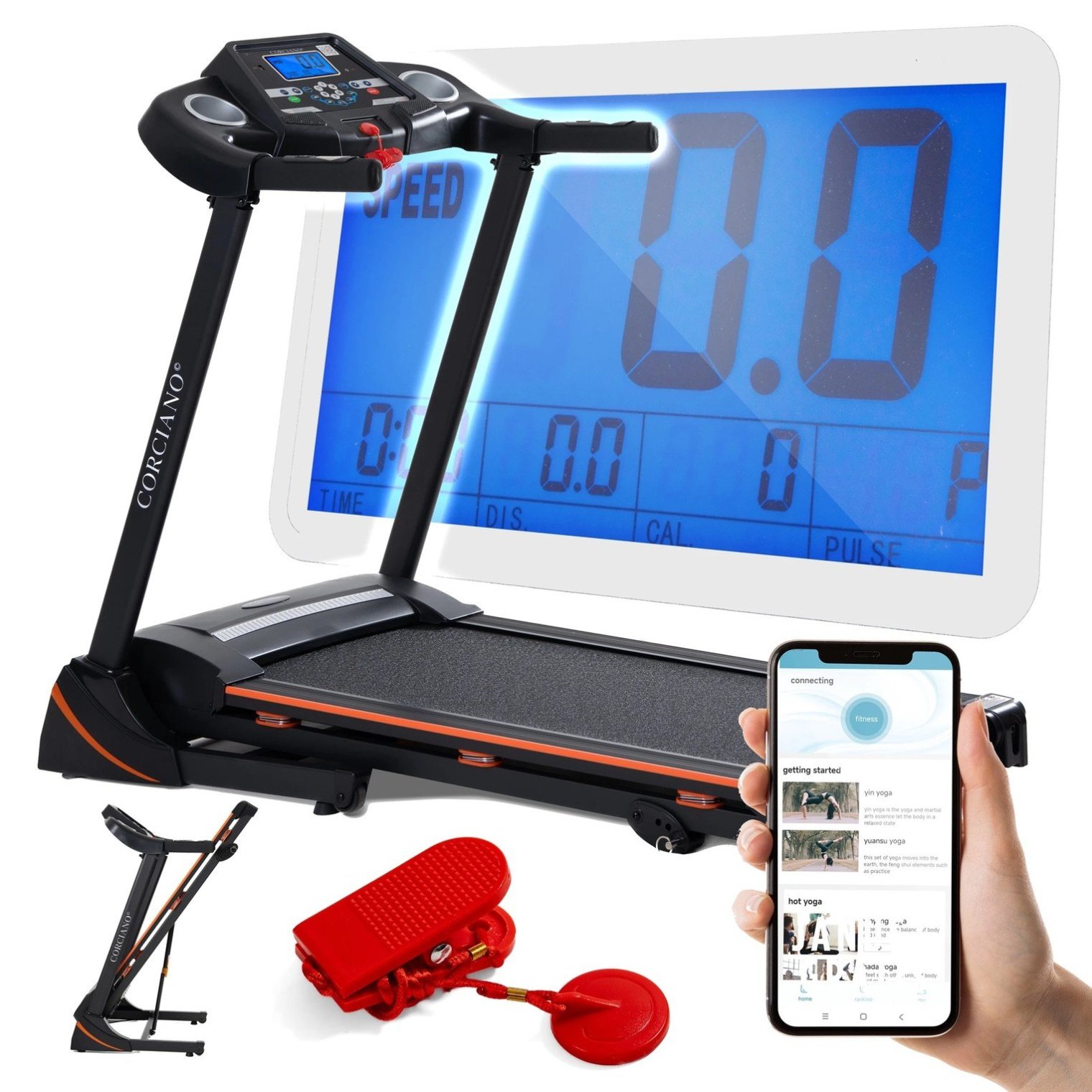 Цей пристрій також підходить для тих, хто веде здоровий спосіб життя, та професіоналів, які дбають про свою фігуру. Міцна конструкція з матеріалів найвищої якості, таких як загартована сталь, забезпечує комфорт та безпеку під час тренувань. Ця бігова доріжка - ідеальне рішення для швидкого спалювання зайвого жиру та підтримання відмінної фізичної форми.