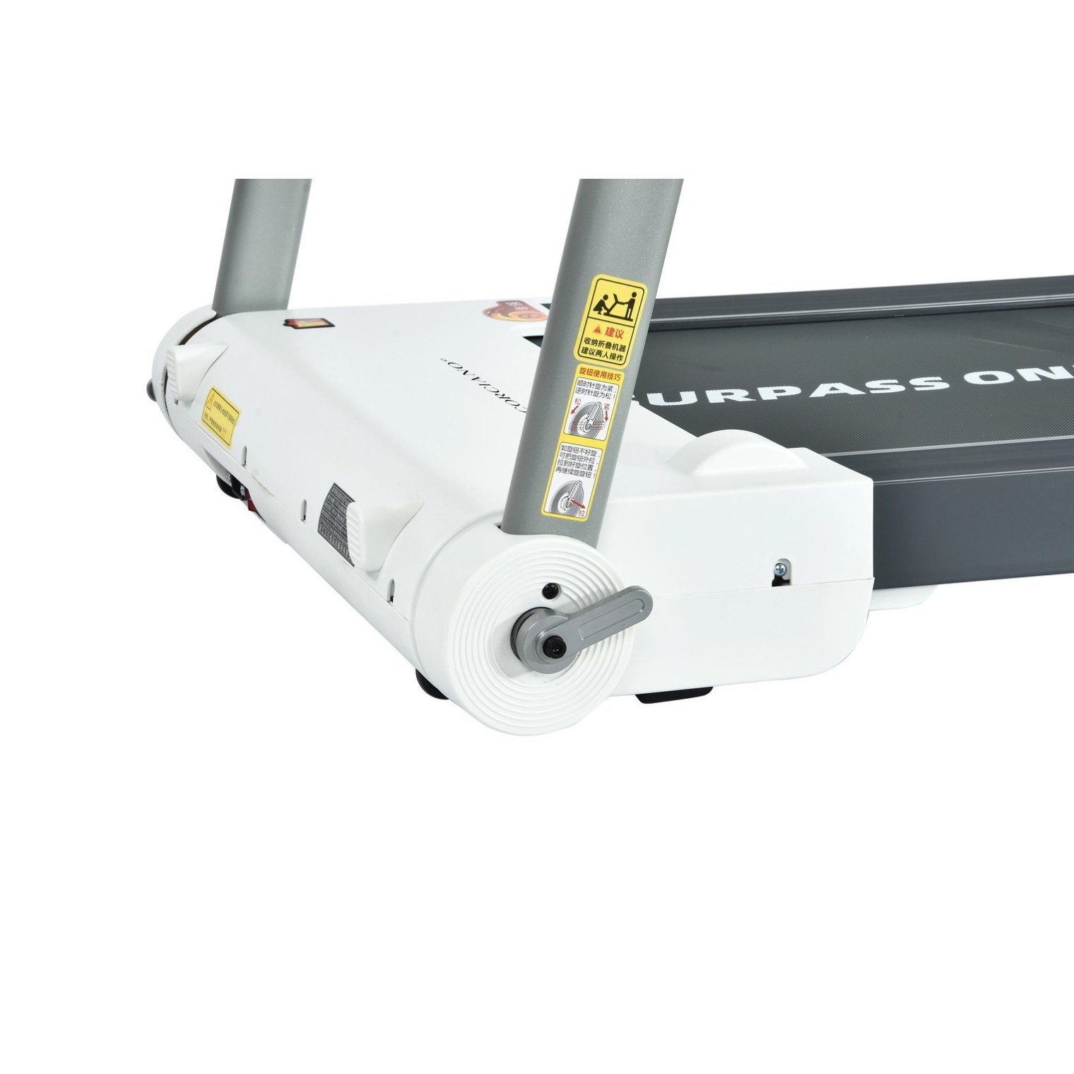 Бігова доріжка дуже ергономічна та зручна для зберігання. Після тренування її можна легко скласти. Вона розвиває швидкість до 14 км/год. Цей сучасний пристрій оснащений РК-дисплеєм та вбудованим вимірювальним комп'ютером. 12 програм тренувань дозволяють індивідуально регулювати тривалість та рівень складності тренування.