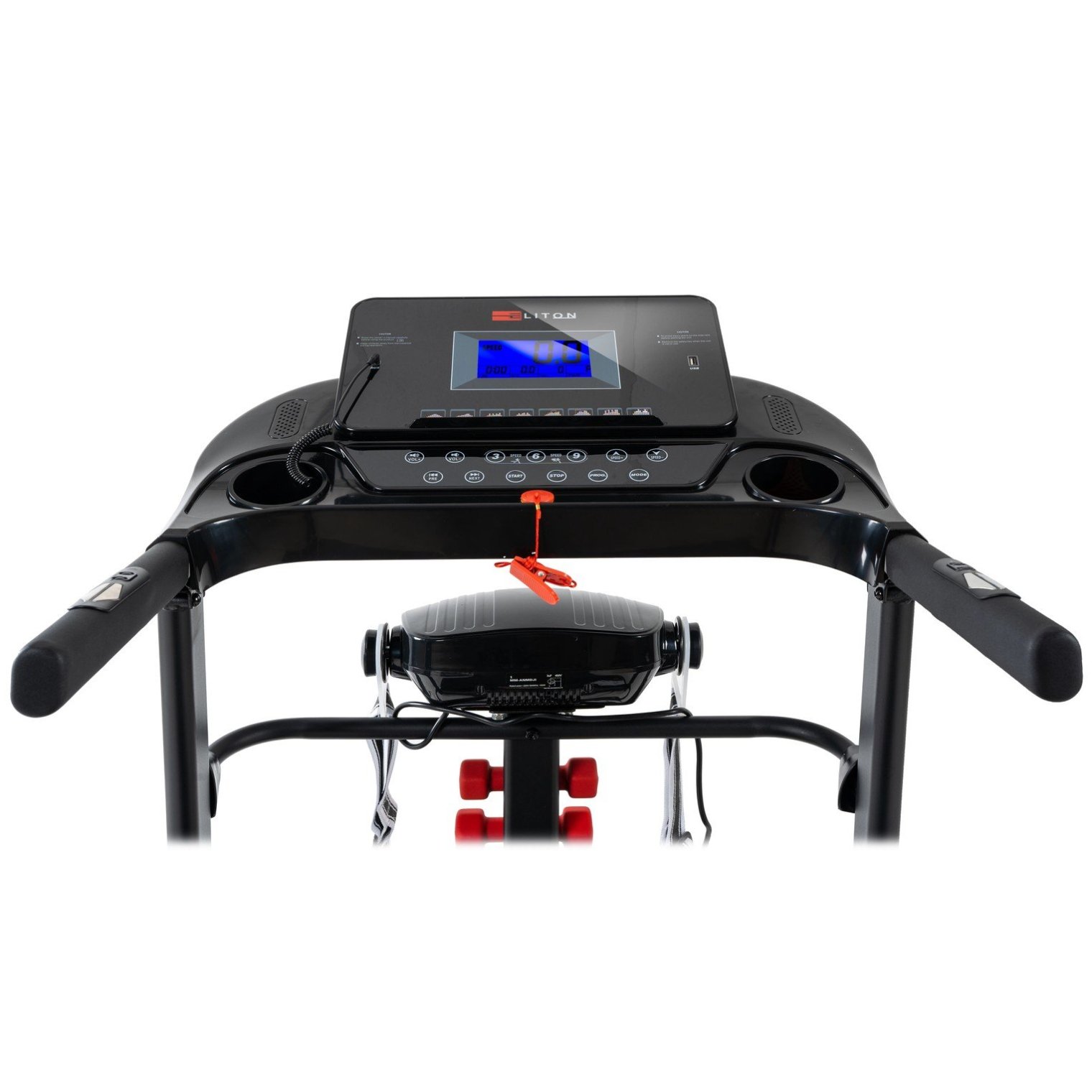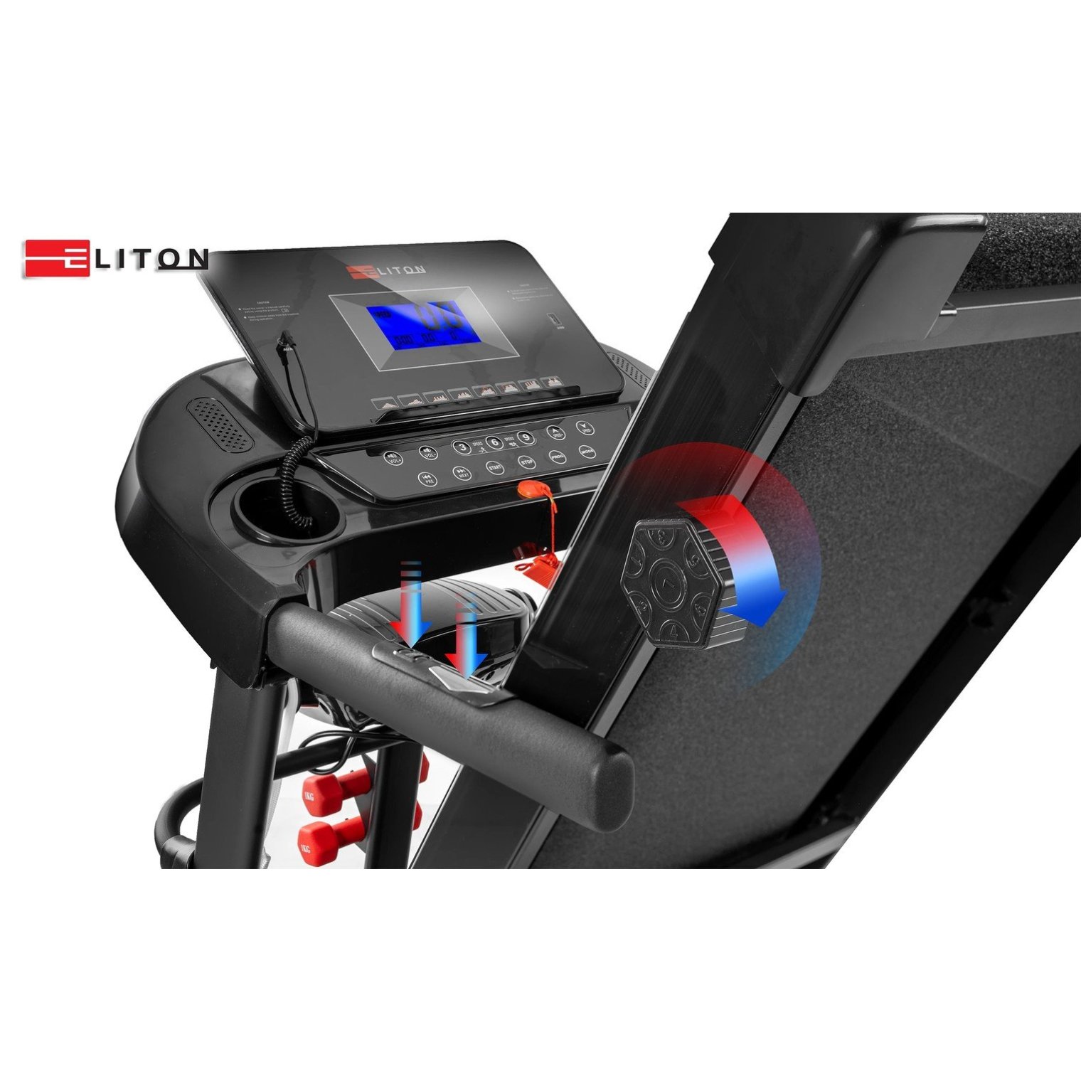 Бігова доріжка Eliton VIGO має практичний масажер. Після тренування ви можете ефективно помасажувати напружені м'язи. Масажний пояс має регульовану довжину та оснащений насадкою з насічками для досягнення найкращих результатів. Цей пристрій також має зміцнюючі властивості. Короткий масаж також може зняти біль у м'язах, спричинений інтенсивним тренуванням.