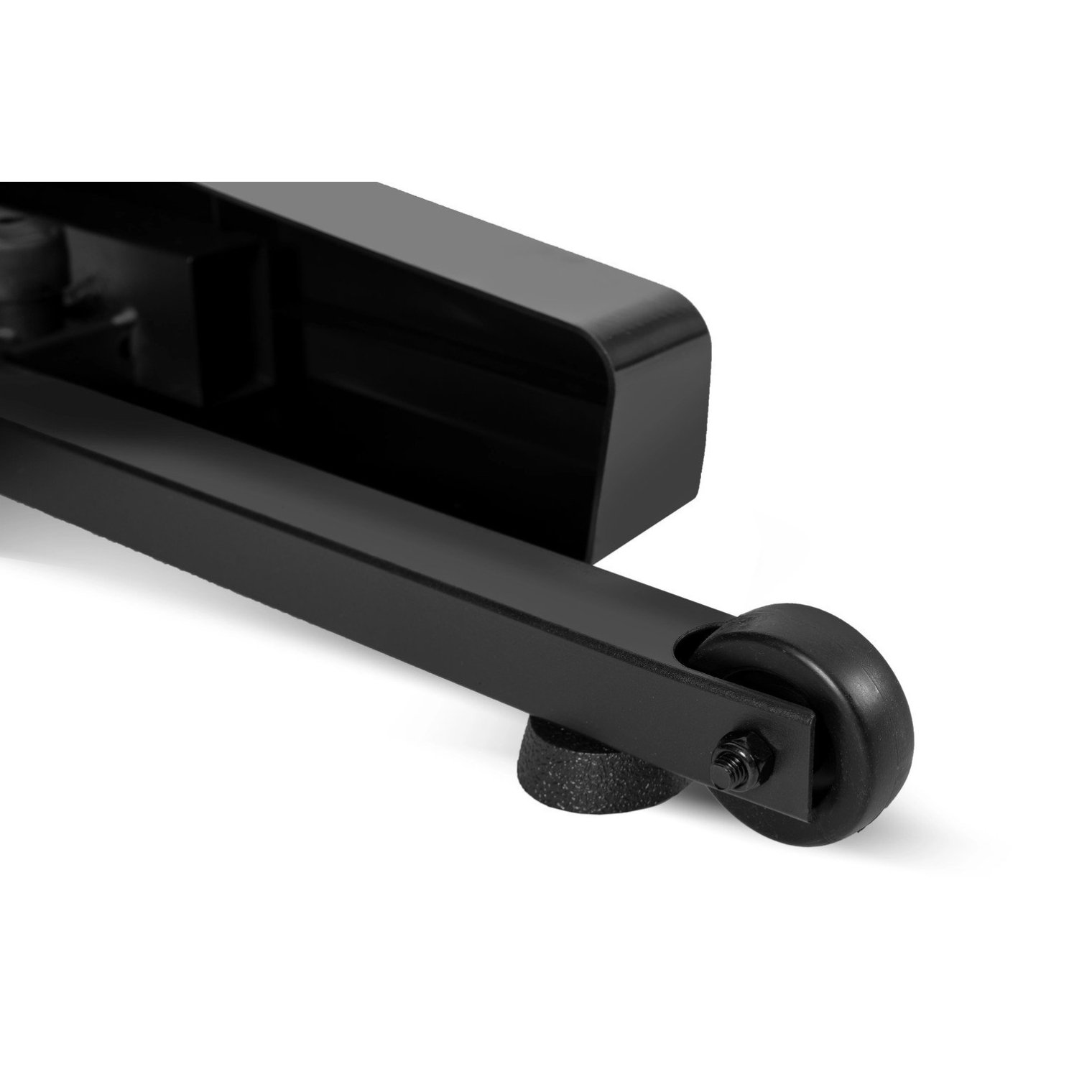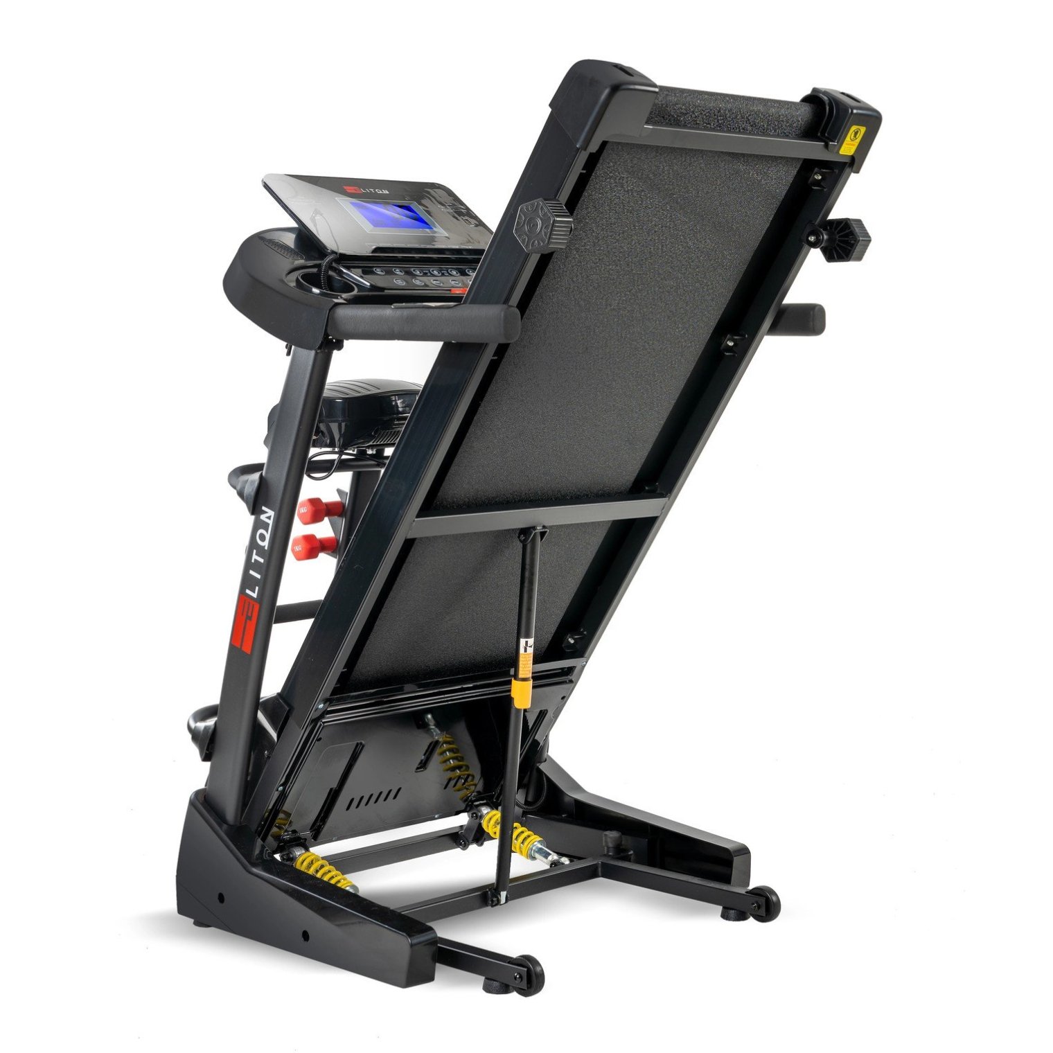 Важливо, що наша бігова доріжка оснащена унікальною системою підйому з газовим амортизатором, завдяки якій у складеному вигляді вона займає лише один квадратний метр! Розкласти бігову доріжку для використання можна одним клацанням. Складання займає лише кілька секунд.