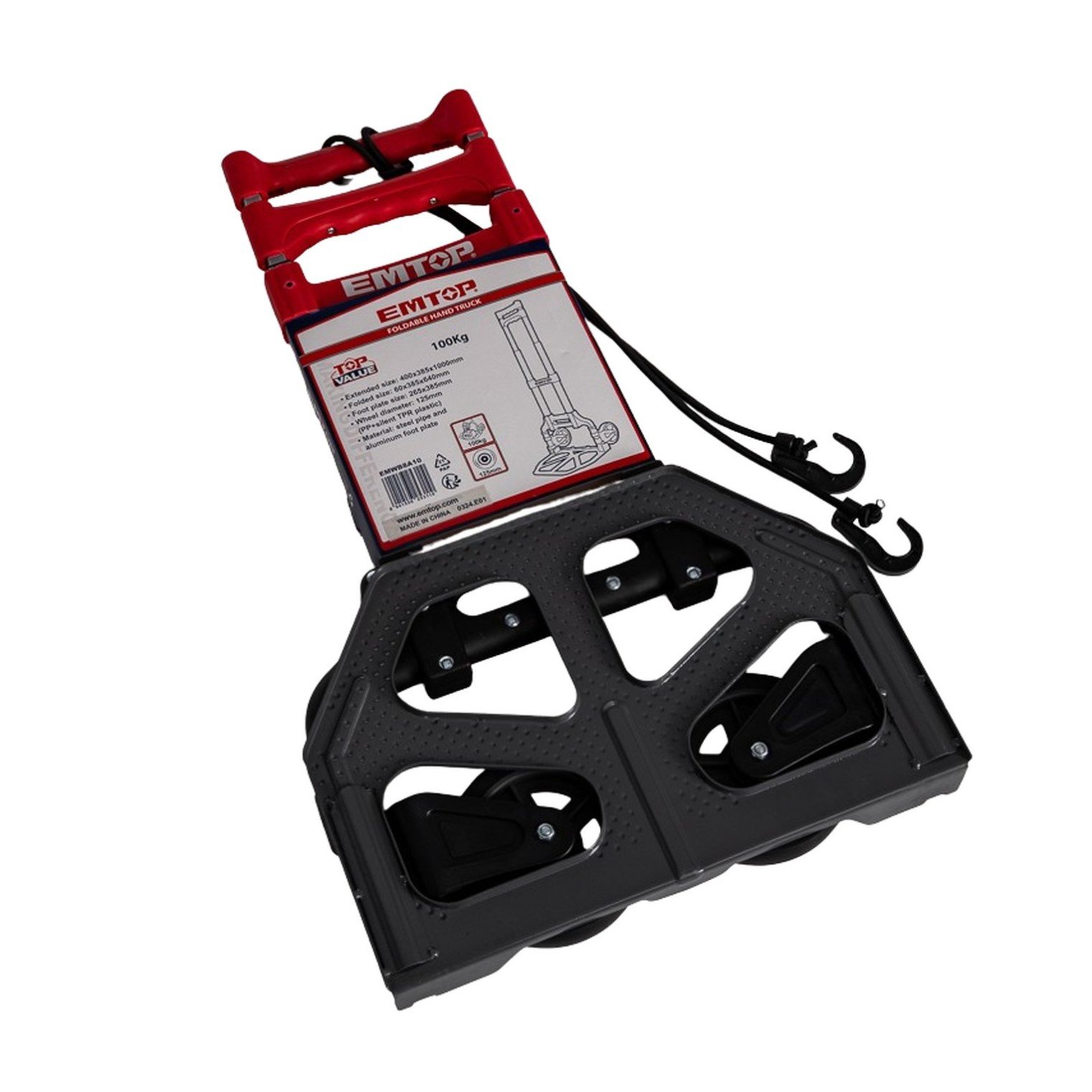 Візок складаний EMTOP – це компактний та легкий транспортний засіб для перевезення вантажів до 100 кг. Він оснащений двома колесами діаметром 125 мм із PP та TPR, легко складається для зберігання, комплектується еластичним шнуром для фіксації вантажу. Ідеально підходить для домашнього використання чи невеликих переміщень.
