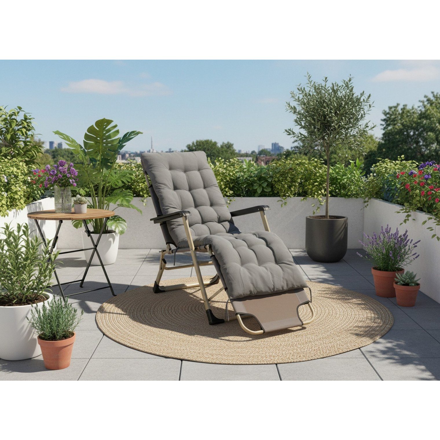 Це ідеальне рішення для тих, хто шукає зручне місце для відпочинку в саду, на терасі або на балконі. Виготовлений із міцних матеріалів, він забезпечує стійкість та комфорт, а м'яка подушка підвищує зручність. Складна конструкція дозволяє легко зберігати та транспортувати шезлонг.