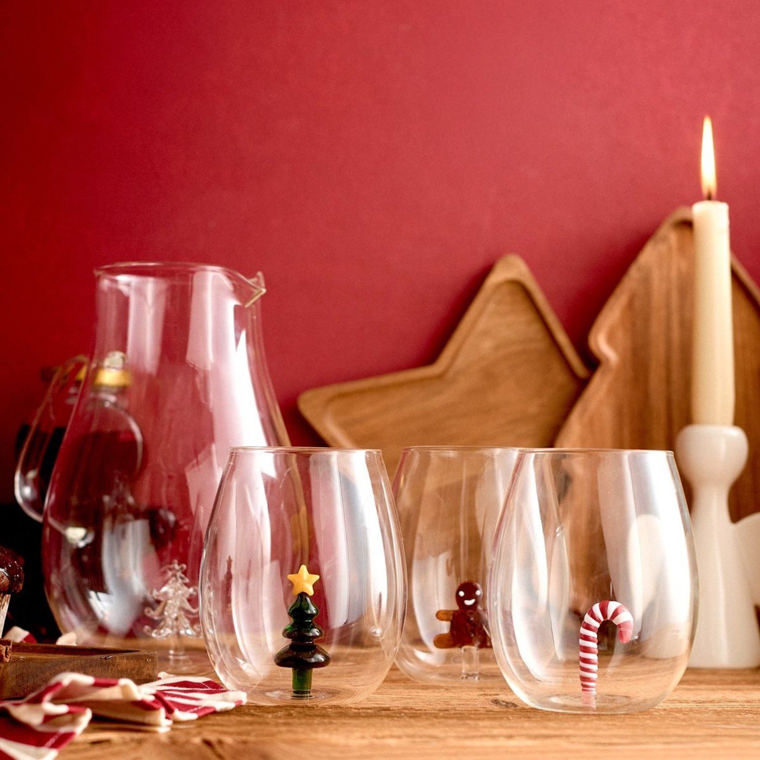 На дні келиха розташована унікальна прикраса у вигляді пряничного чоловічка. Цей різдвяний келих стане чудовою окрасою столу для сімейної урочистості. Завдяки мінімалістичному дизайну фігурка пряничного чоловічка стає помітною та виразною, надаючи всьому сервізу радісний та святковий штрих.
