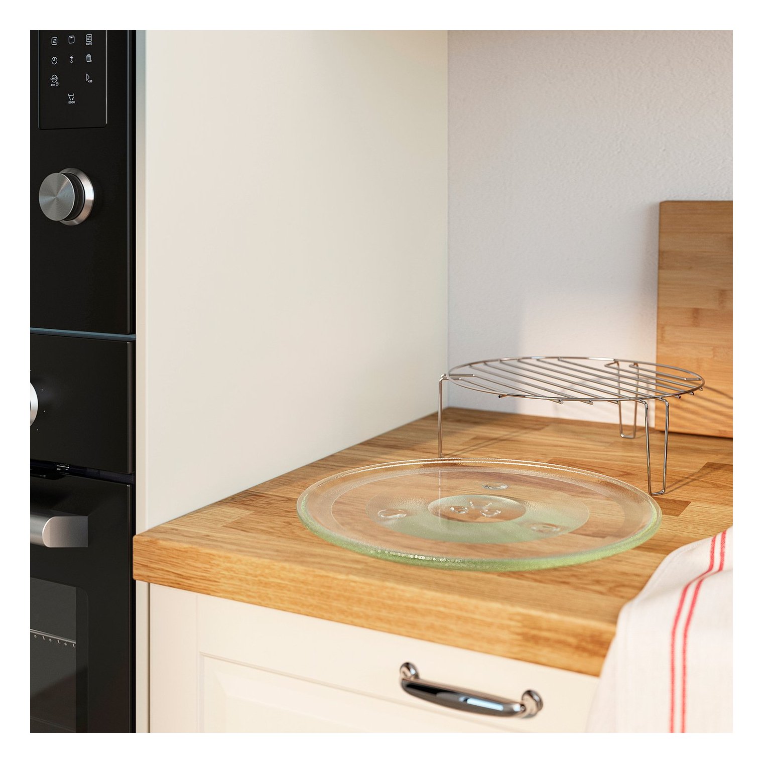 Обертова пластина забезпечує рівномірний розподіл мікрохвильового випромінювання та повне нагрівання/приготування їжі.