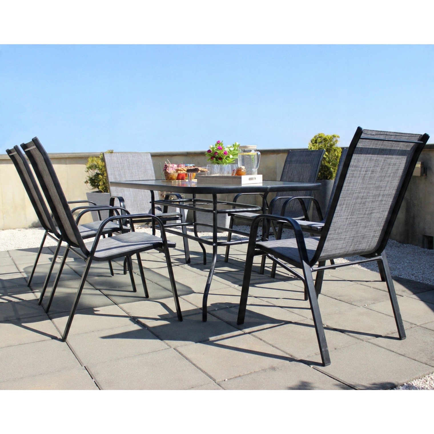 Класичний садовий стіл зі скляною стільницею, що підходить до більшості моделей стільців. Він ідеально підійде для саду чи тераси під час великої сімейної зустрічі чи зустрічі із друзями. Протиковзні ніжки гарантують стійкість та безпечне використання. Ніжки столу додатково профільовані для підтримки стільниці та зміцнення її країв. Додаткова рама, що фіксує ніжки, робить конструкцію міцнішою і дозволяє витримувати велике навантаження на стільницю.