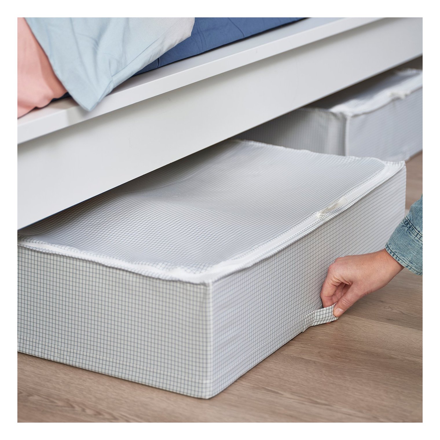 Практичний спосіб зберігання сезонного одягу або постільної білизни – ідеально вміщується під ліжком.