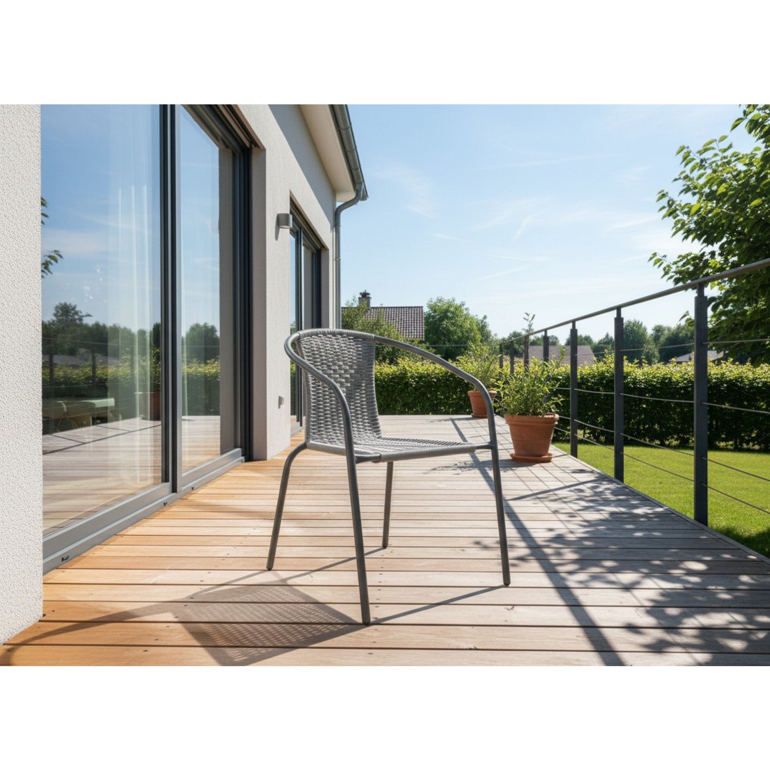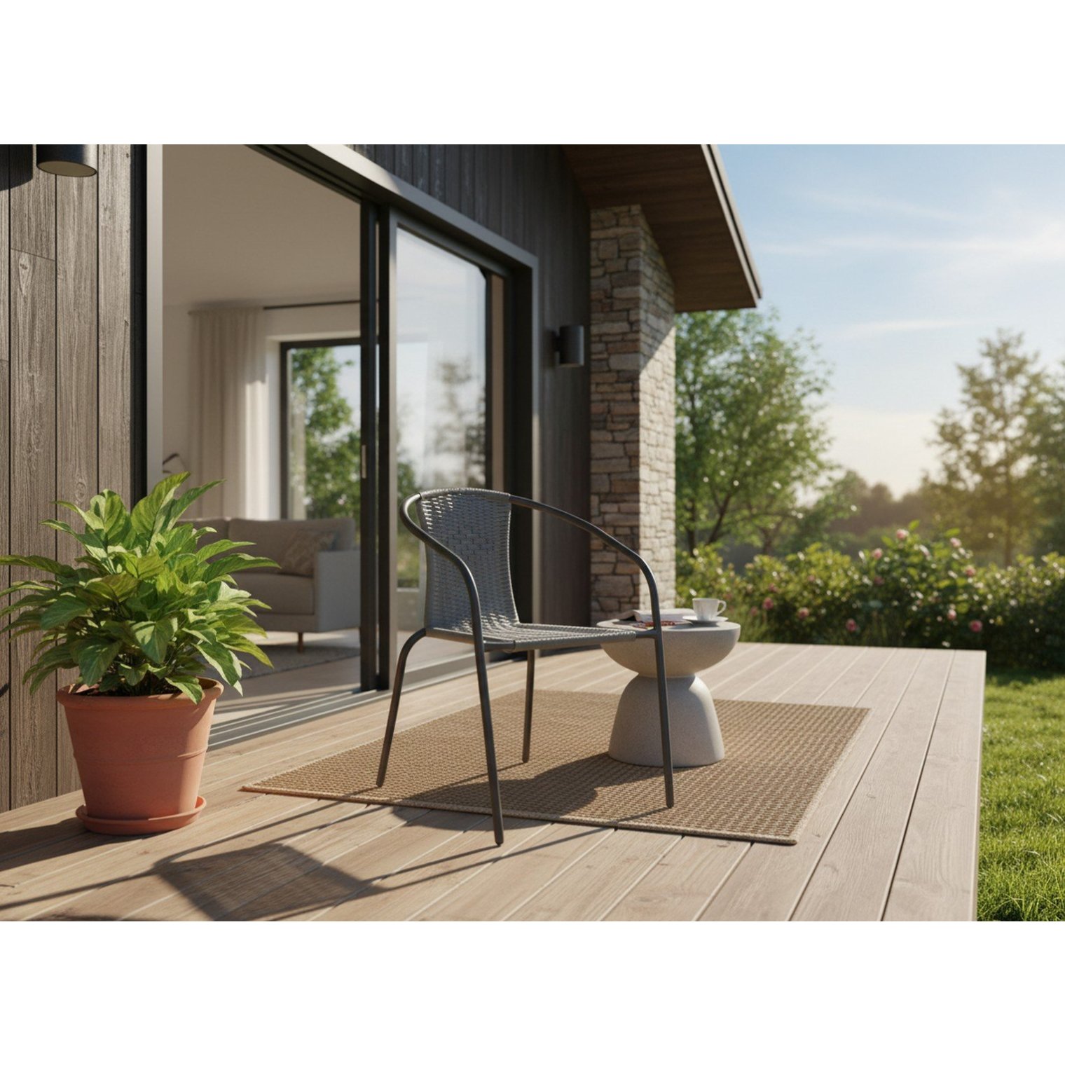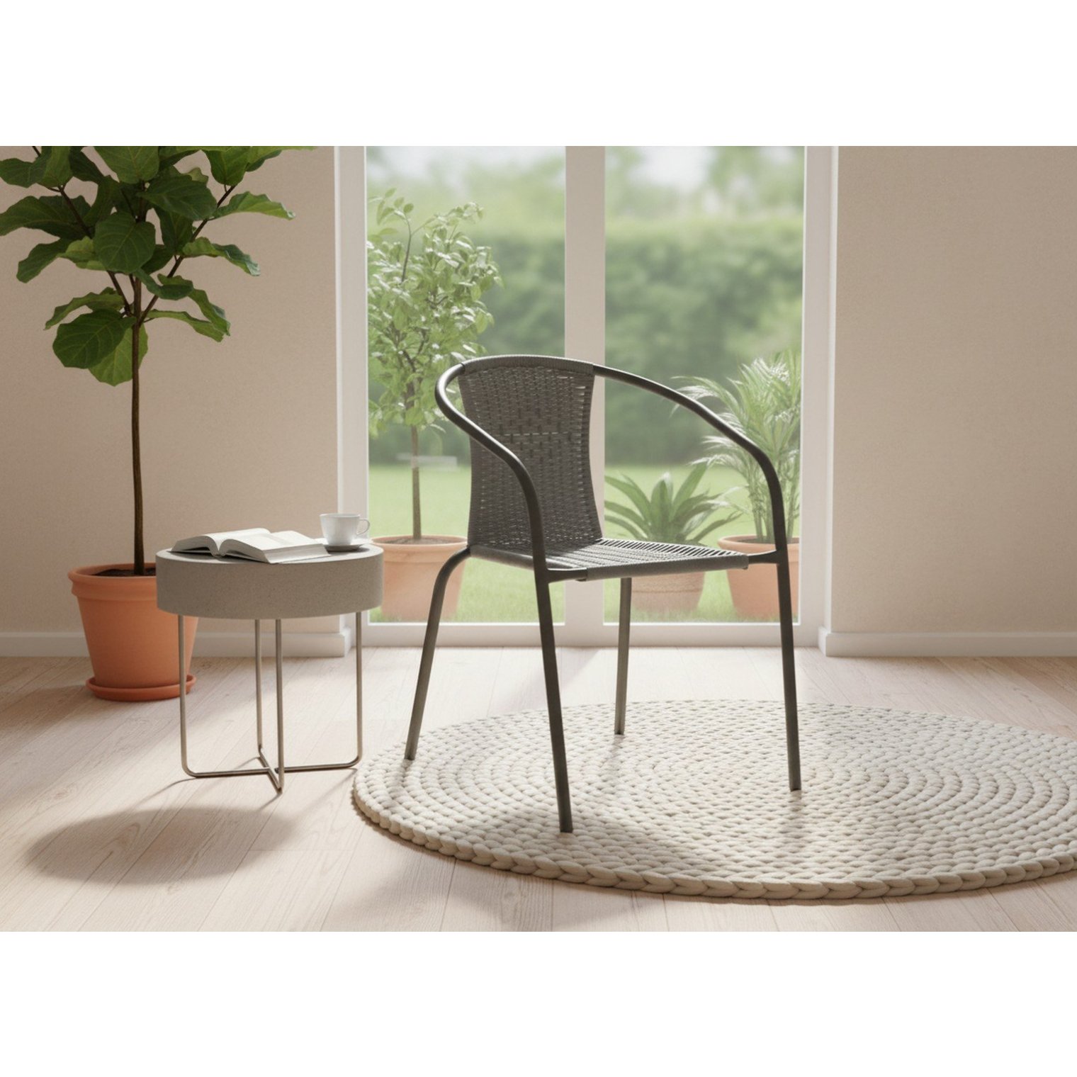 Стильне садове крісло в універсальному сірому кольорі – відмінний вибір для тих, хто цінує поєднання естетики та функціональності. Сучасна форма та нейтральна кольорова гама дозволяють крісло ідеально вписатися в будь-яке оформлення зовнішнього простору – від саду до тераси та балкону.
