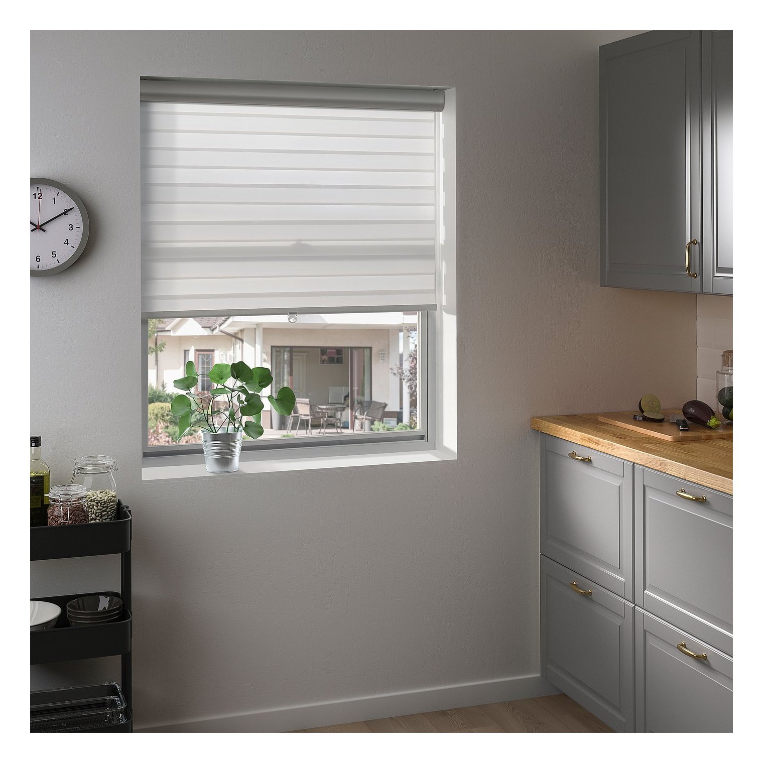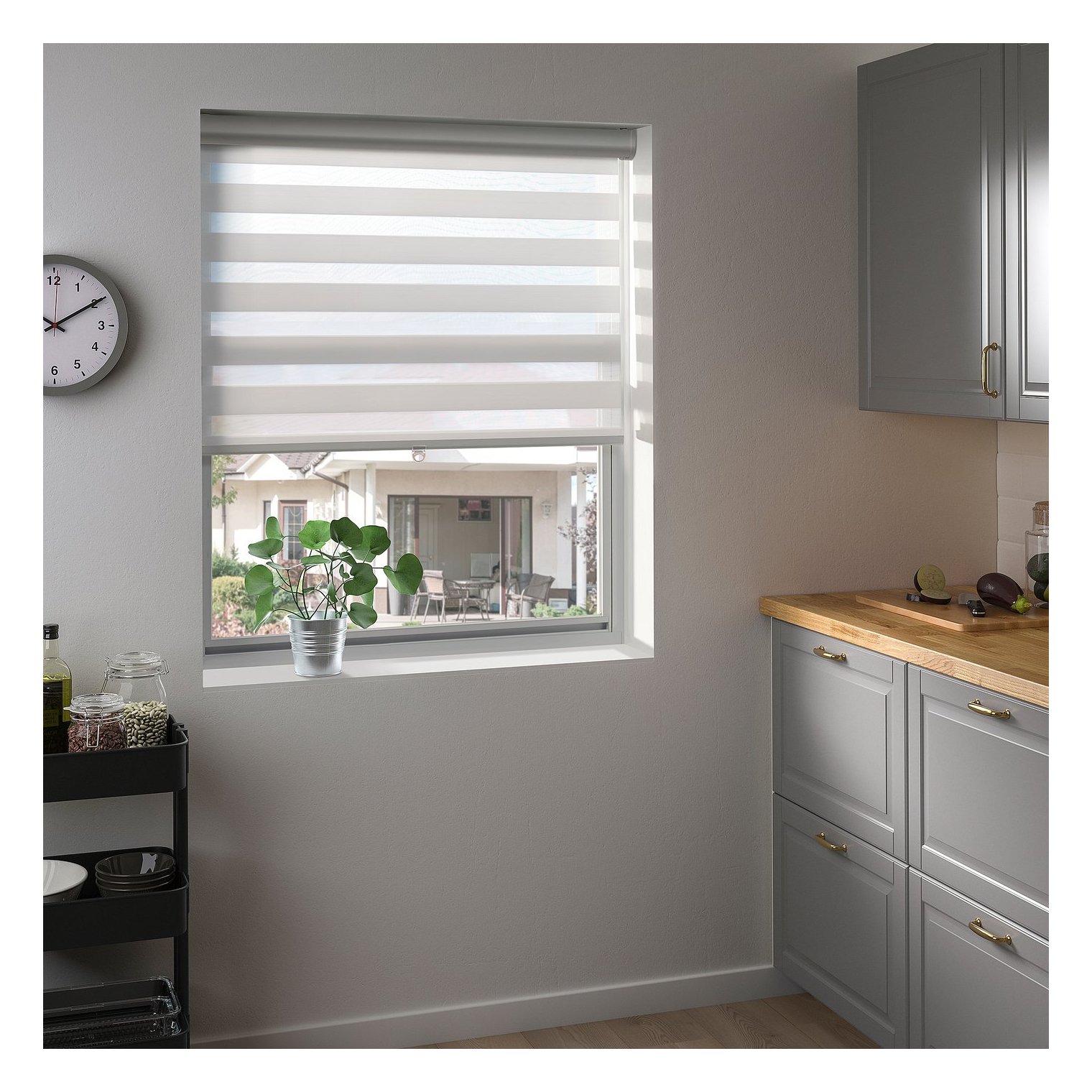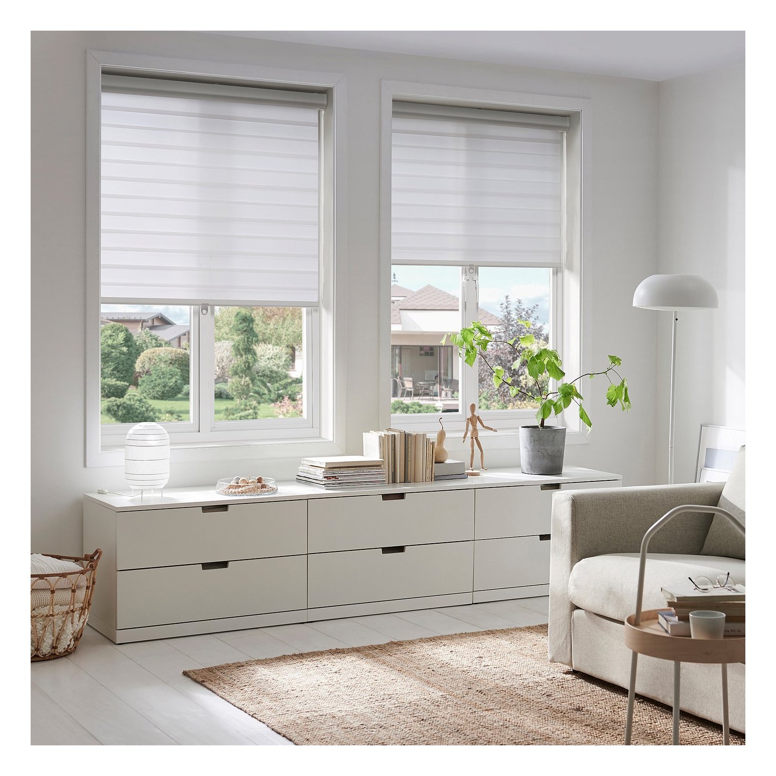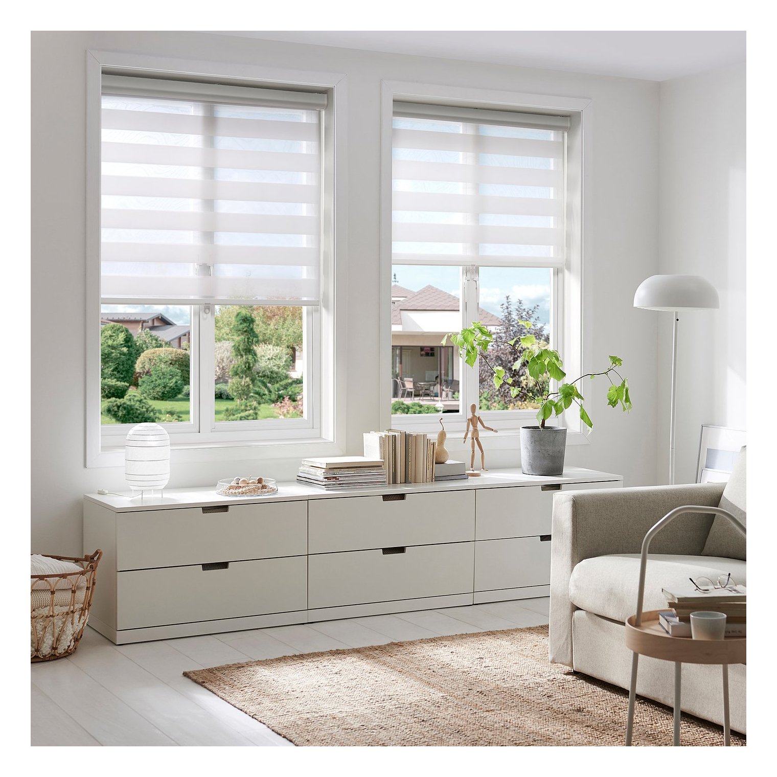 За допомогою цих подвійних рулонних штор можна легко регулювати кількість проникаючого світла і ступінь прозорості, швидко переключаючись з режиму штор в режим драпірування.