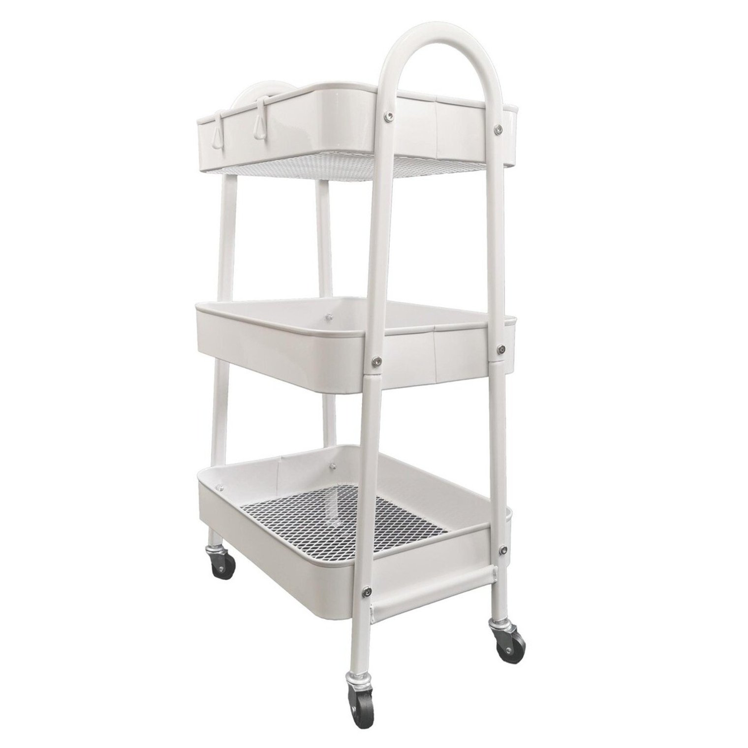 Три просторі полиці та чотири функціональні гачки забезпечують зручність та організацію простору. Цей металевий візок на колесах - ідеальне рішення для зберігання необхідних речей під рукою.