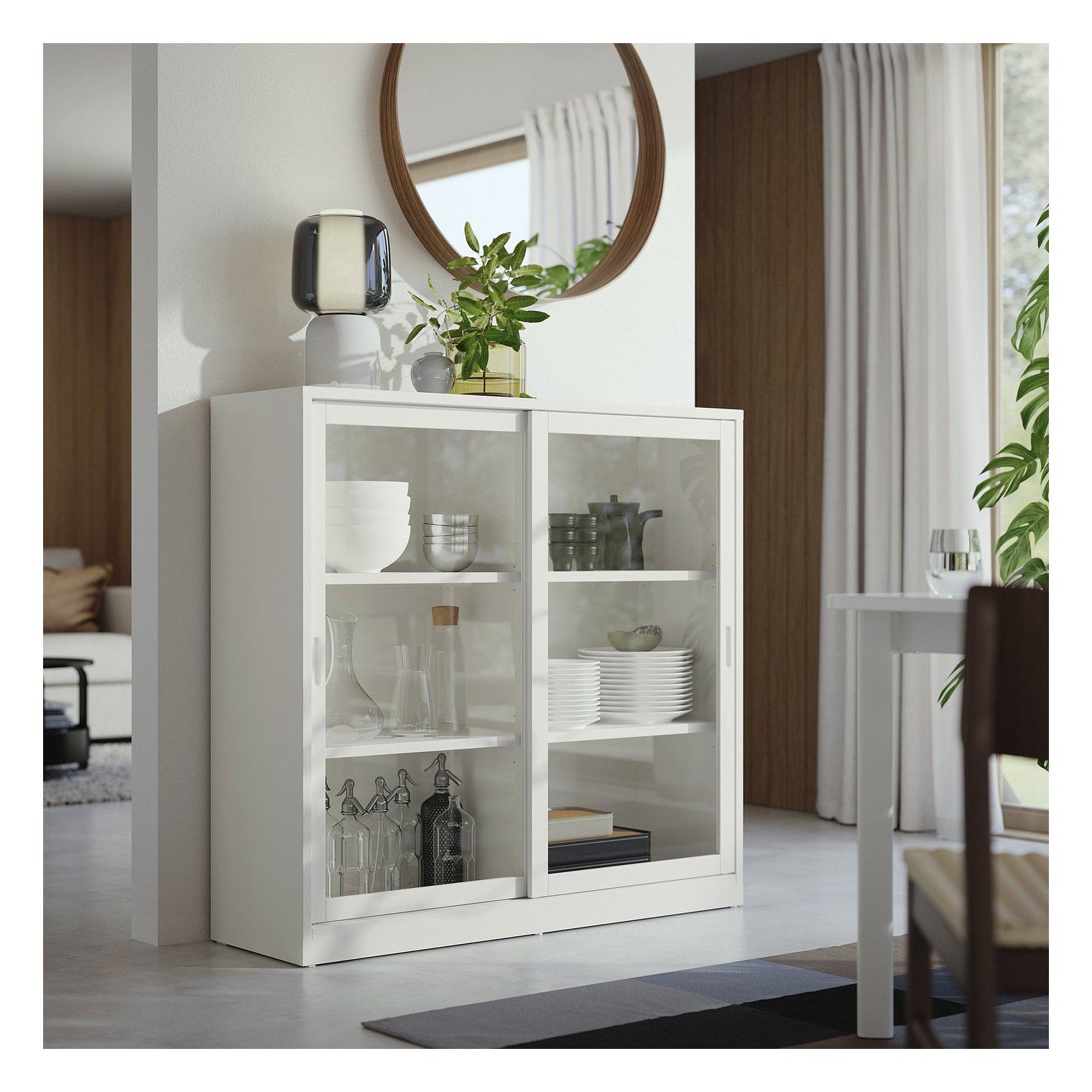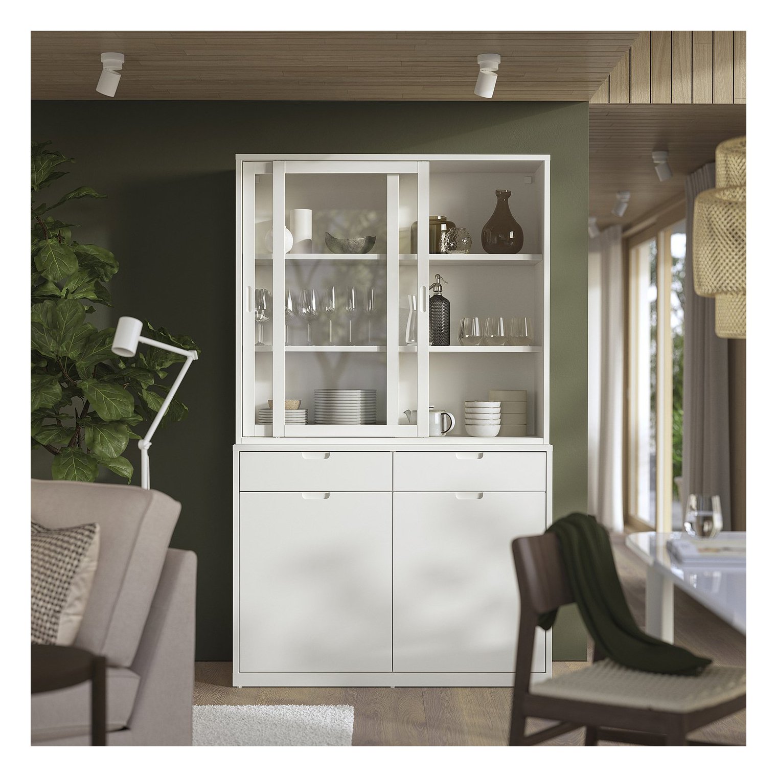 Цей модуль можна розмістити на буфеті ТОНСТАД глибиною 47 см, щоб створити вертикальну комбінацію. Утримуйте плінтус, щоб повернутися до вихідного положення.