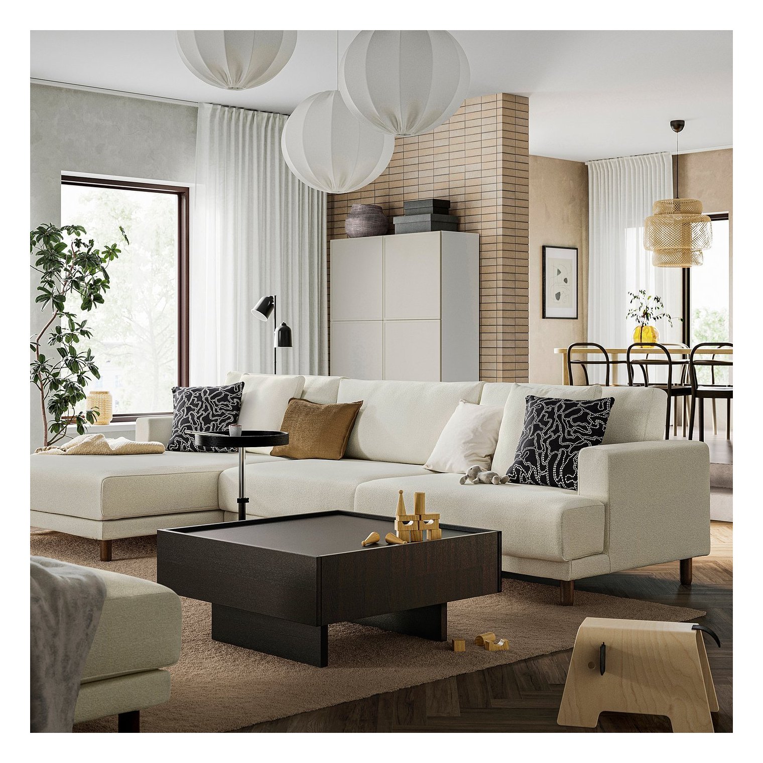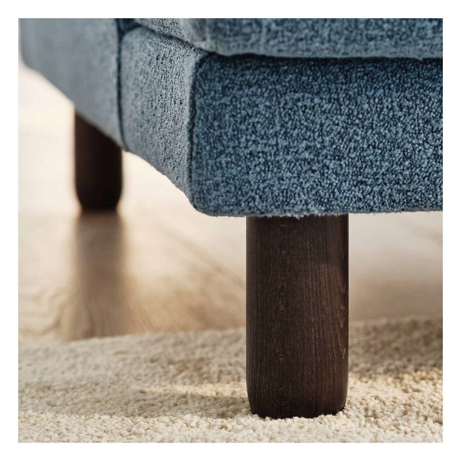 Ножки дивана оставляют пространство под ним, придавая ему воздушный вид и облегчая уборку.