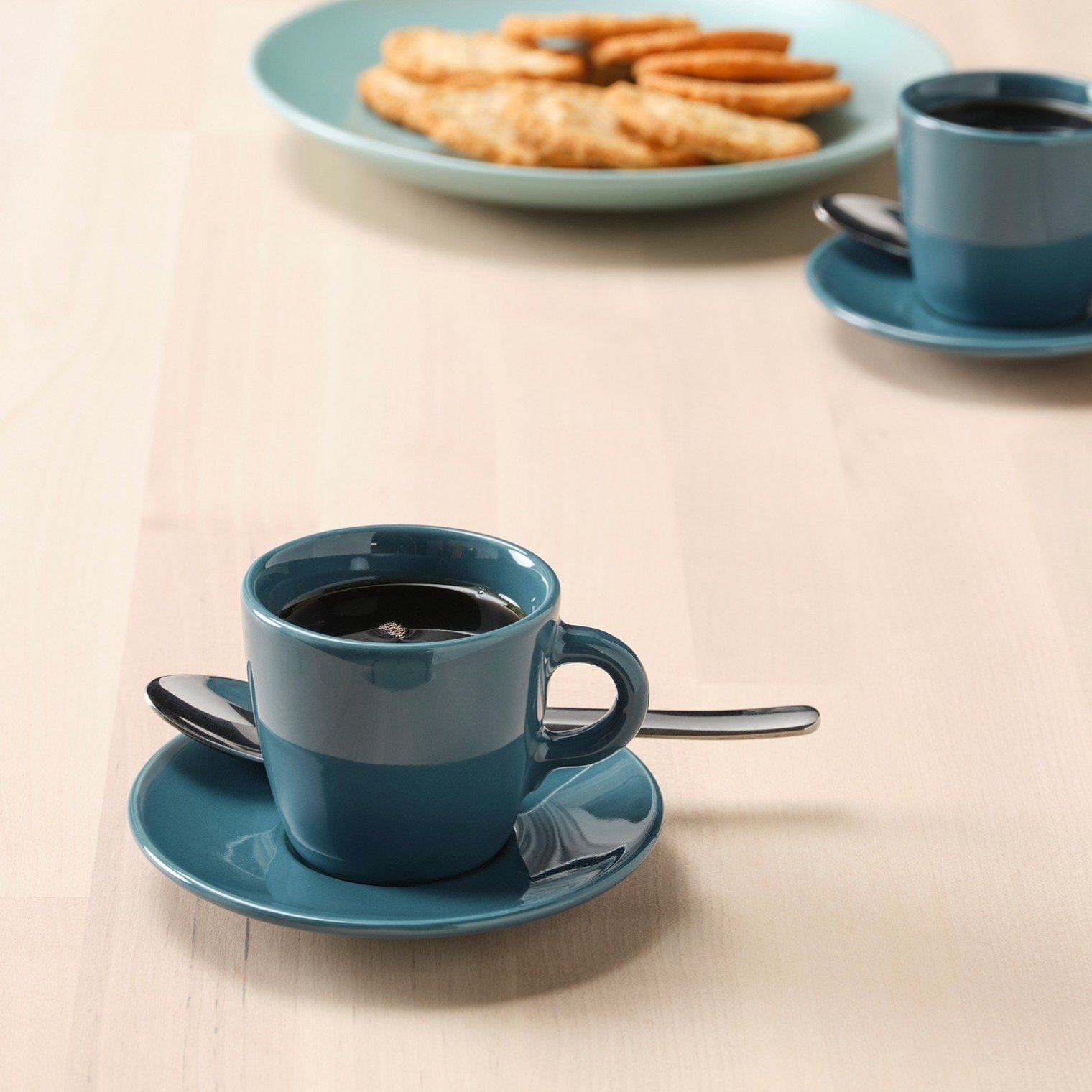 IKEA УЦІНКА Набір чашок з блюдцем FARGKLAR 70 мл 4 шт Темно-бірюзовий brak/904.818.20