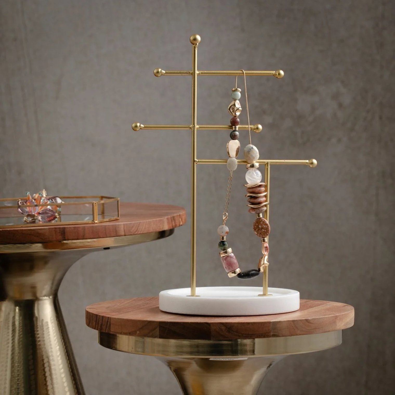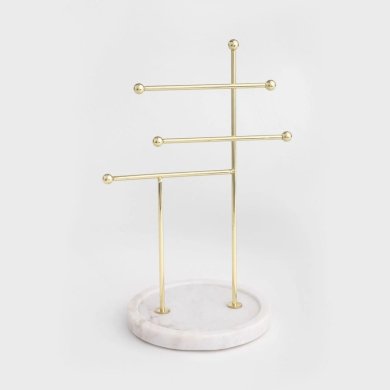 Підкресліть красу своїх ювелірних виробів та збережіть їх у порядку за допомогою дисплея DITA. Його золотистий мінімалістичний дизайн дозволяє елегантно продемонструвати намисто, браслети або сережки, надавши їм неповторного блиску. Завдяки стійкій основі дисплей поєднує в собі сучасний дизайн із позачасовою елегантністю, ідеально вписуючись у будь-який простір, як на туалетному столику, так і в вбиральні.