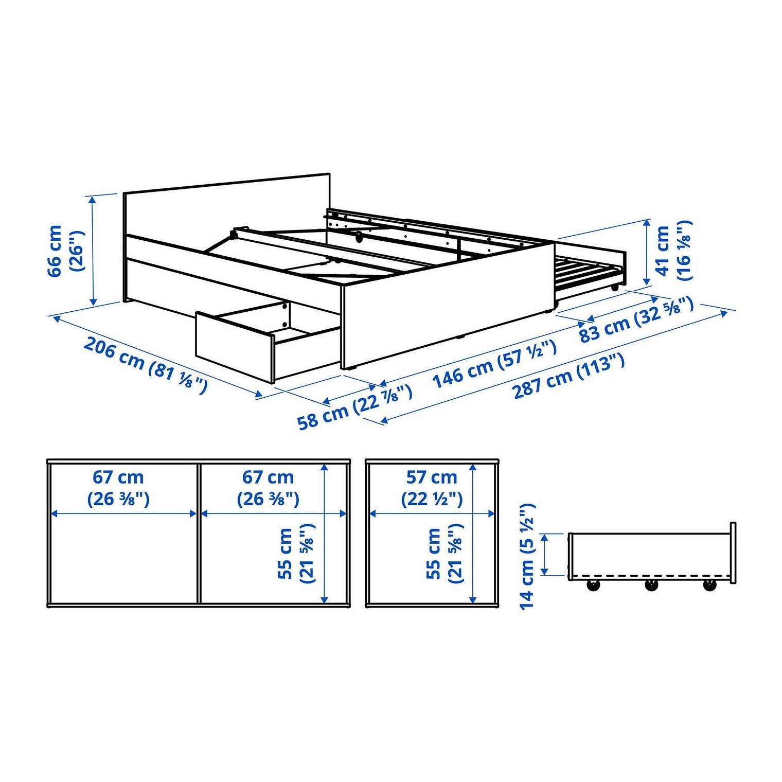 Каркас ліжка/контейнер для постільної білизни, 2 шт./ліжко з каркасом