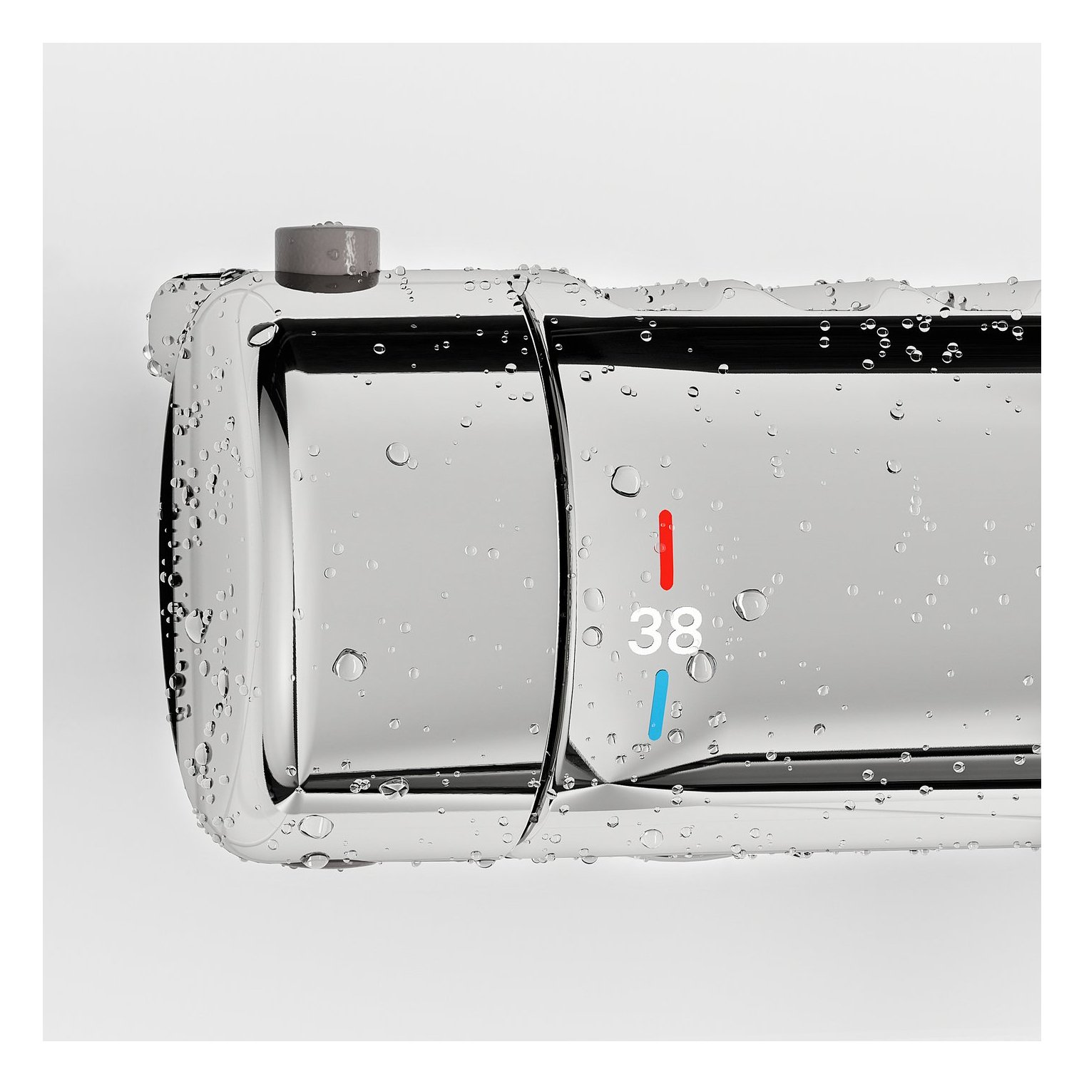 Кнопка обмеження температури 38°C захищає від гарячої води та опіків. Високу температуру можна встановити, відключивши кнопку блокування на перемикачі температури.